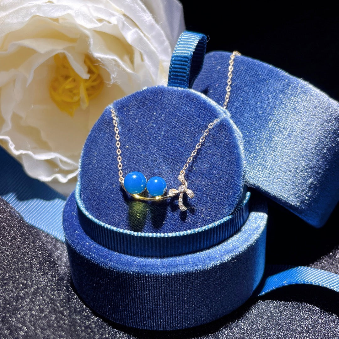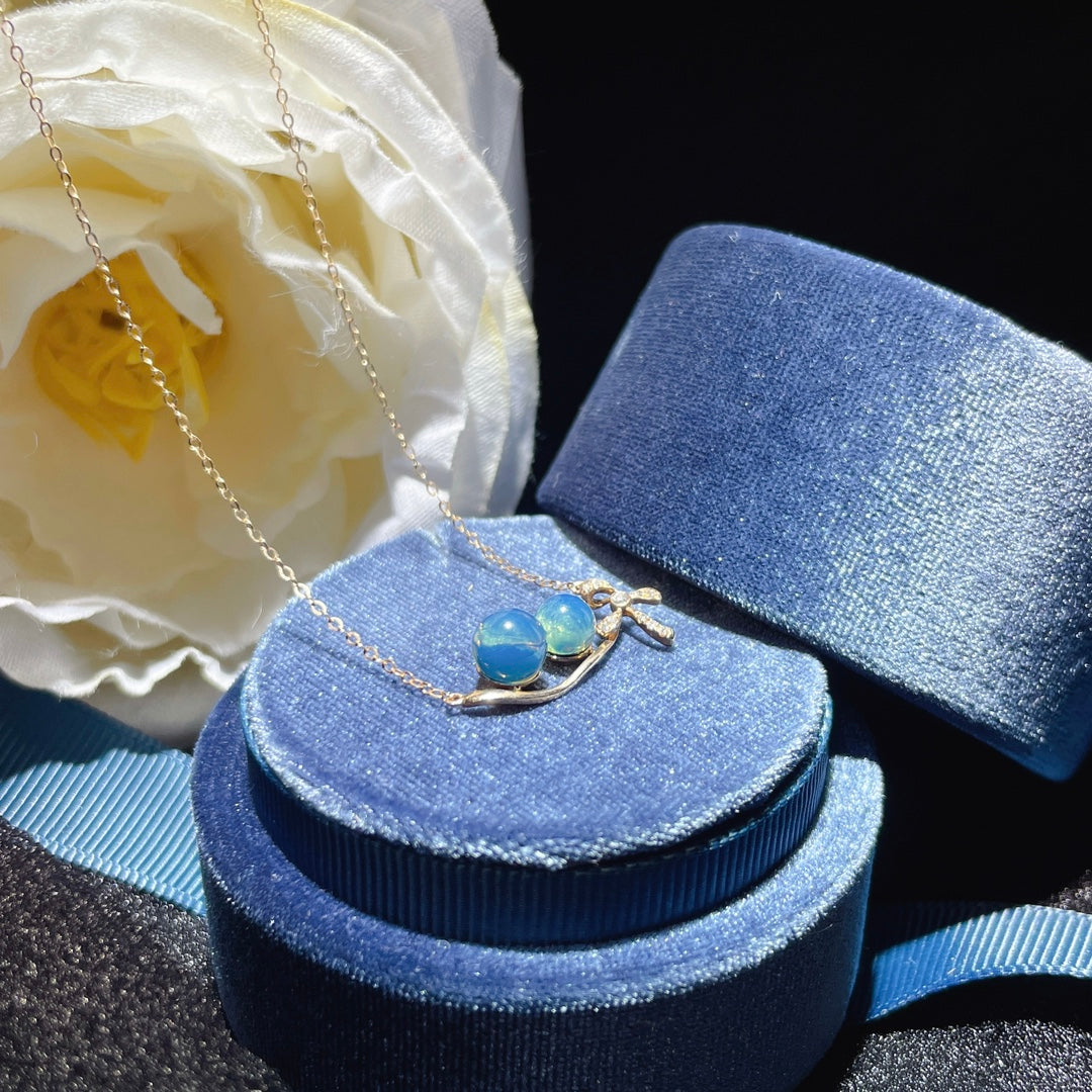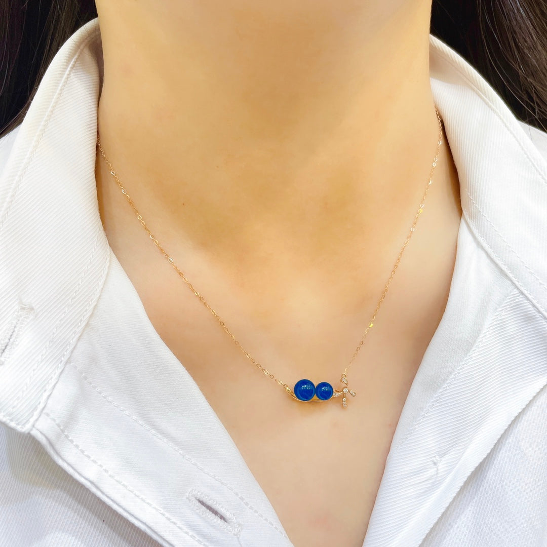 قلادة من الكهرمان الأزرق الدومينيكاني مرصعة بالذهب عيار 18 قيراط - مجوهرات ذات شغف لا ينضب