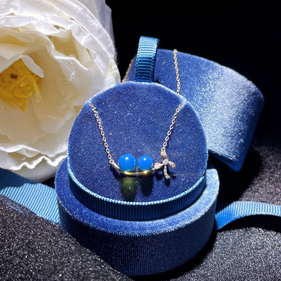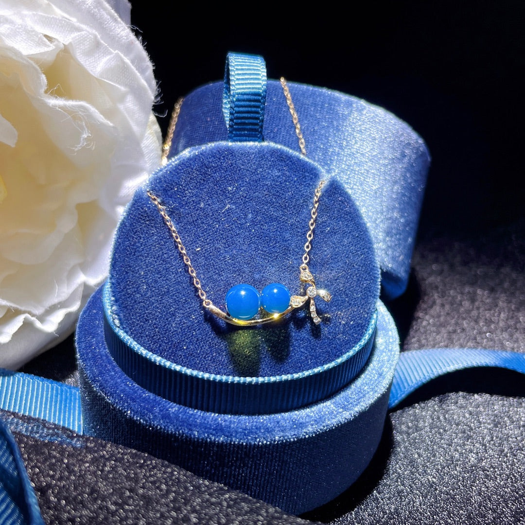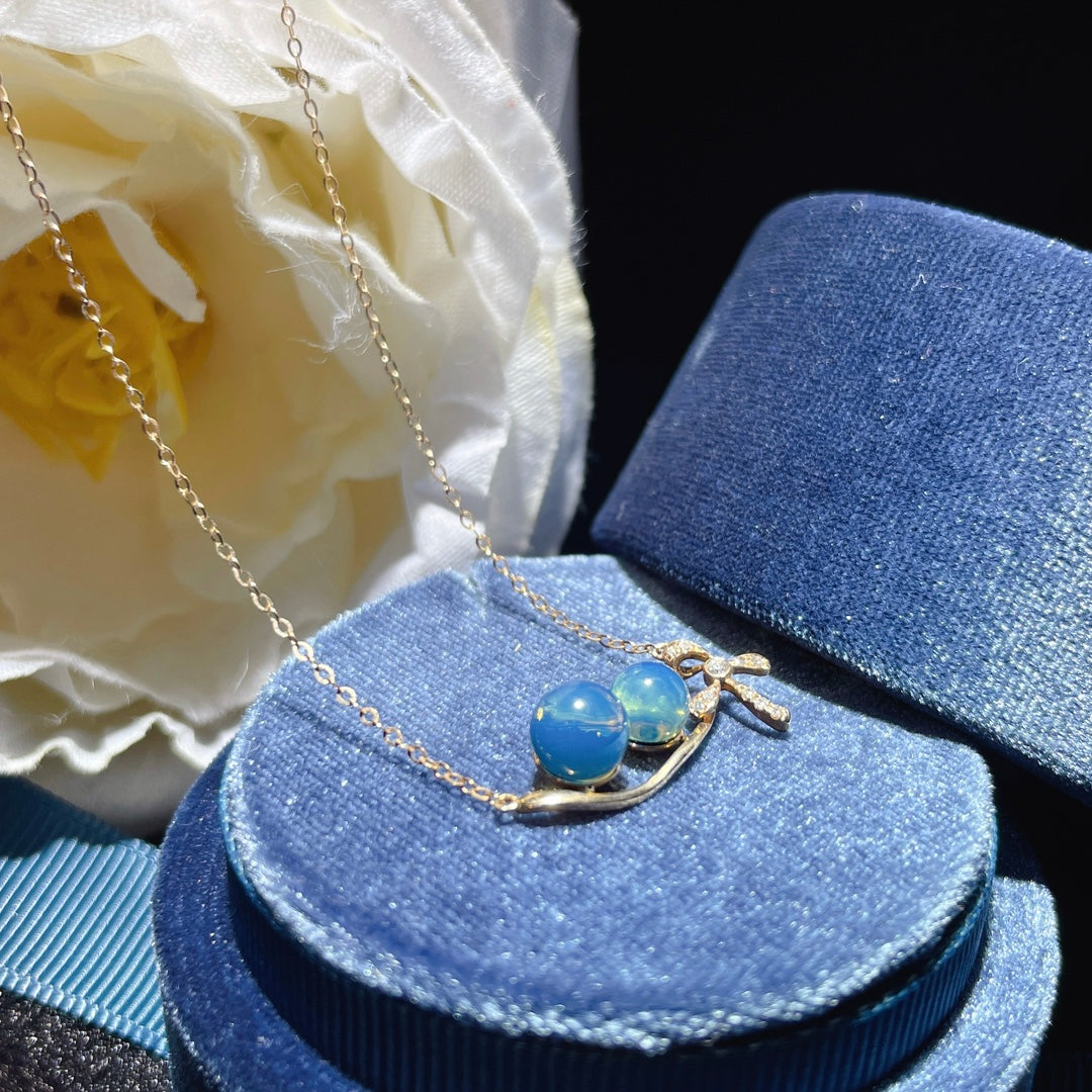 قلادة من الكهرمان الأزرق الدومينيكاني مرصعة بالذهب عيار 18 قيراط - مجوهرات ذات شغف لا ينضب