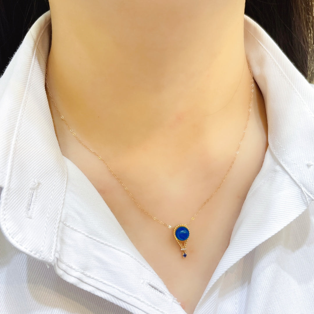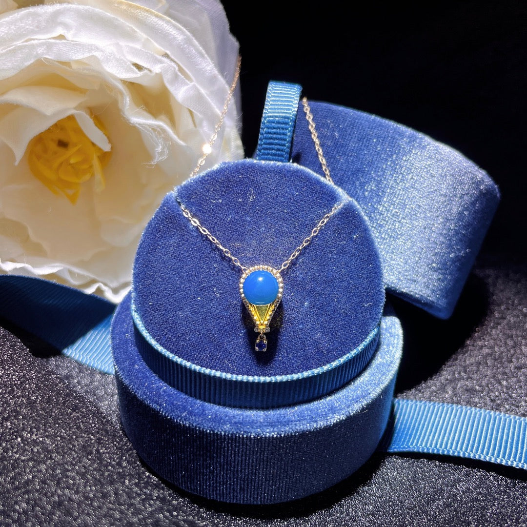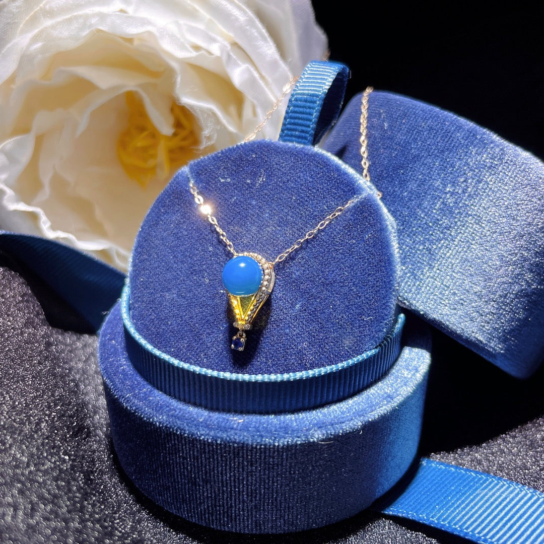 قلادة رائعة من الذهب الدومينيكاني من الكهرمان الأزرق عيار 18 قيراط - مجوهرات لأيام نابضة بالحياة