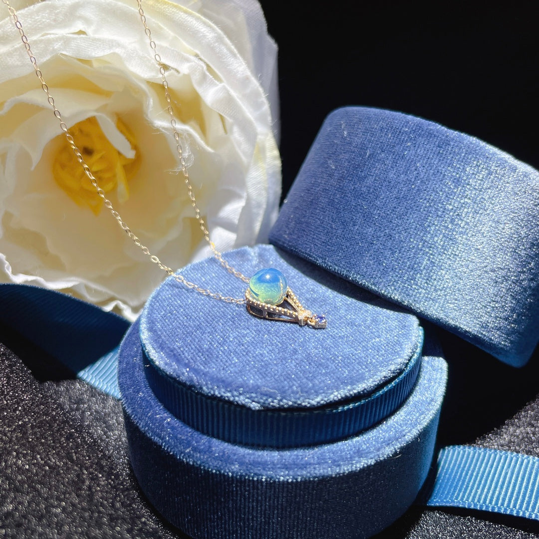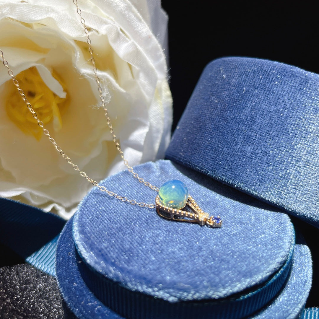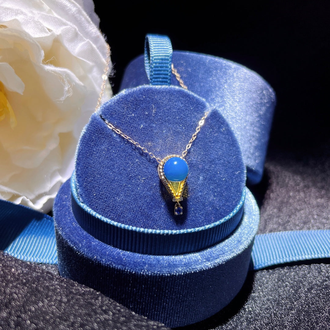 قلادة رائعة من الذهب الدومينيكاني من الكهرمان الأزرق عيار 18 قيراط - مجوهرات لأيام نابضة بالحياة