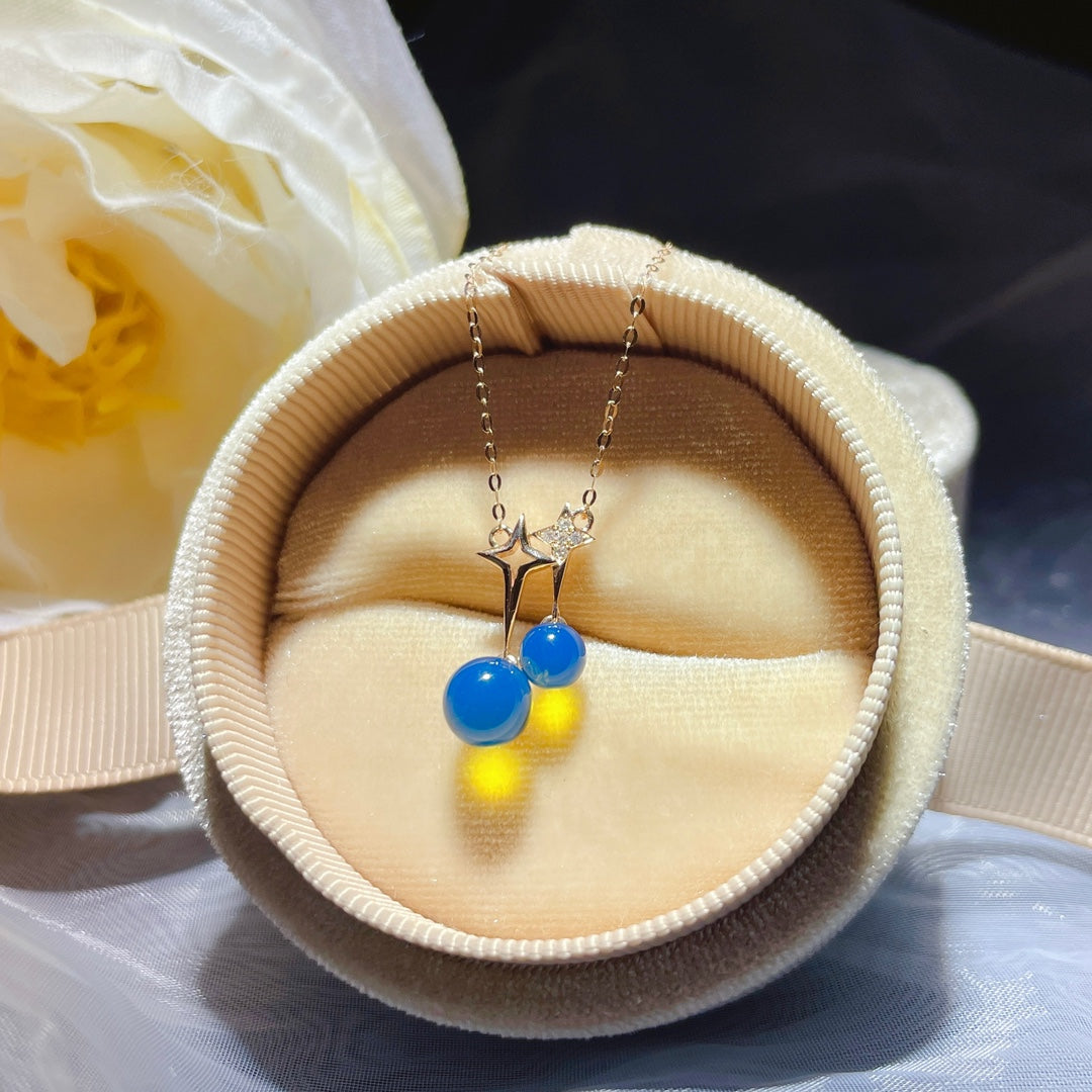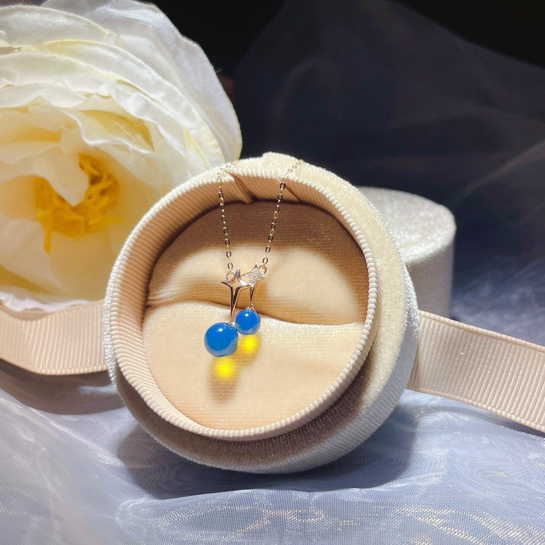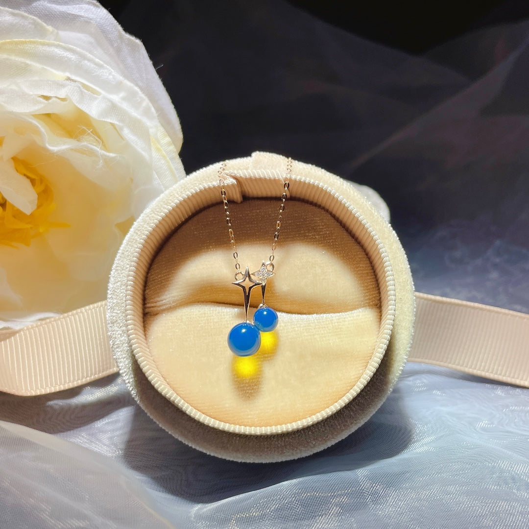 وصول جديد: قلادة من الكهرمان الأزرق الدومينيكي المضمنة بالذهب عيار 18 قيراط - مجوهرات أنيقة
