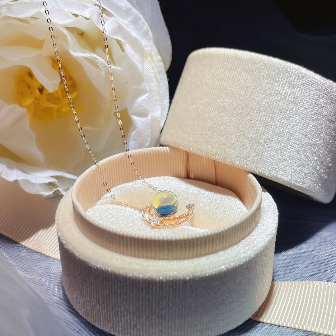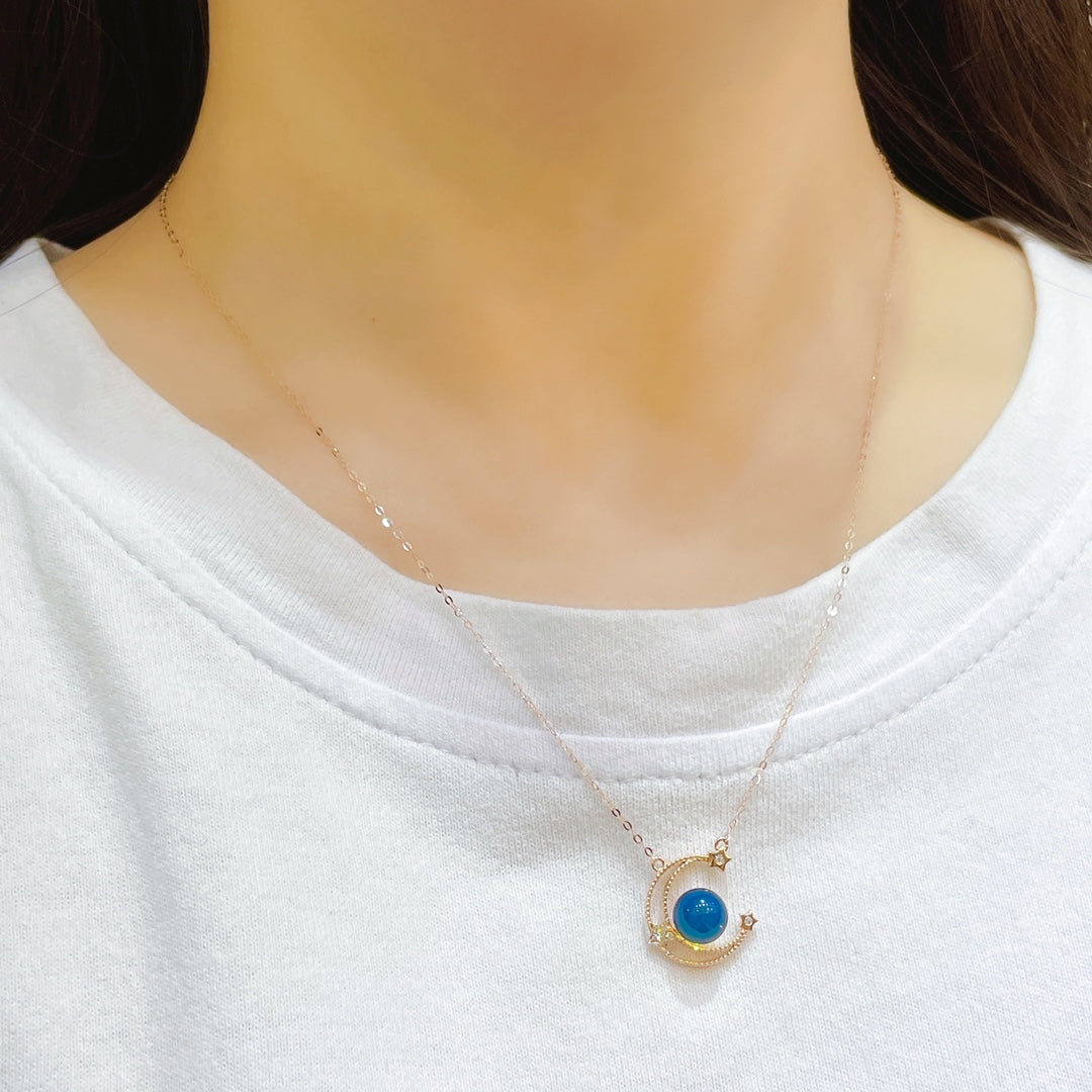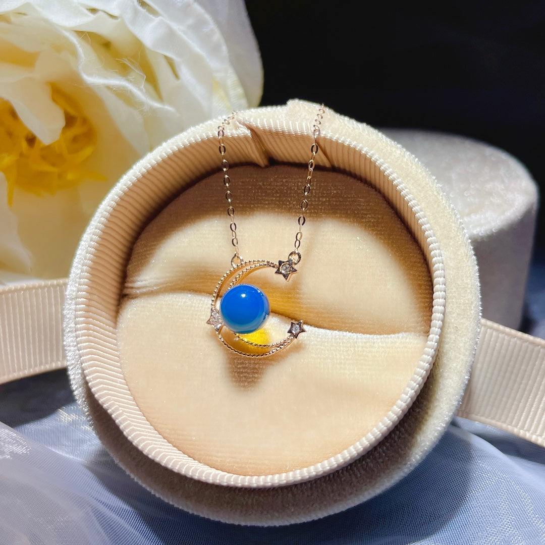احتضن العالم الرومانسي بداخلك، بينما تعتز باللحظات اليومية. نقدم لكم قلادة العنبر الأزرق الدومينيكي الرائعة المطلية بالذهب عيار 18 قيراط، وهي تحفة حقيقية تجسد جوهر الأناقة والرقي.