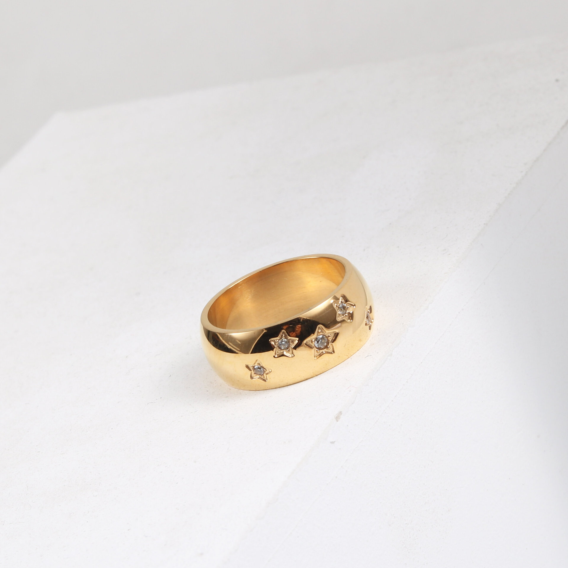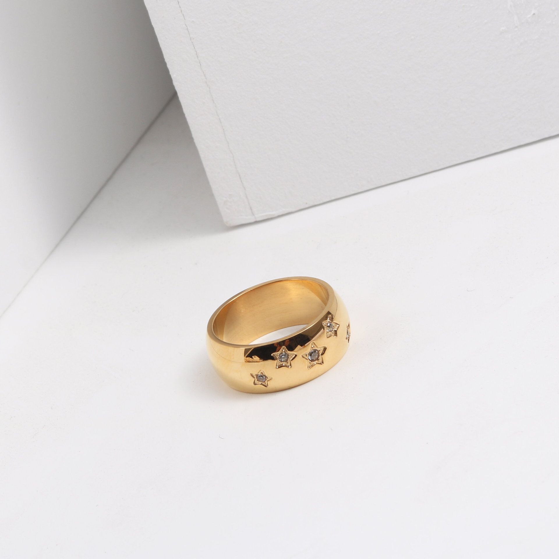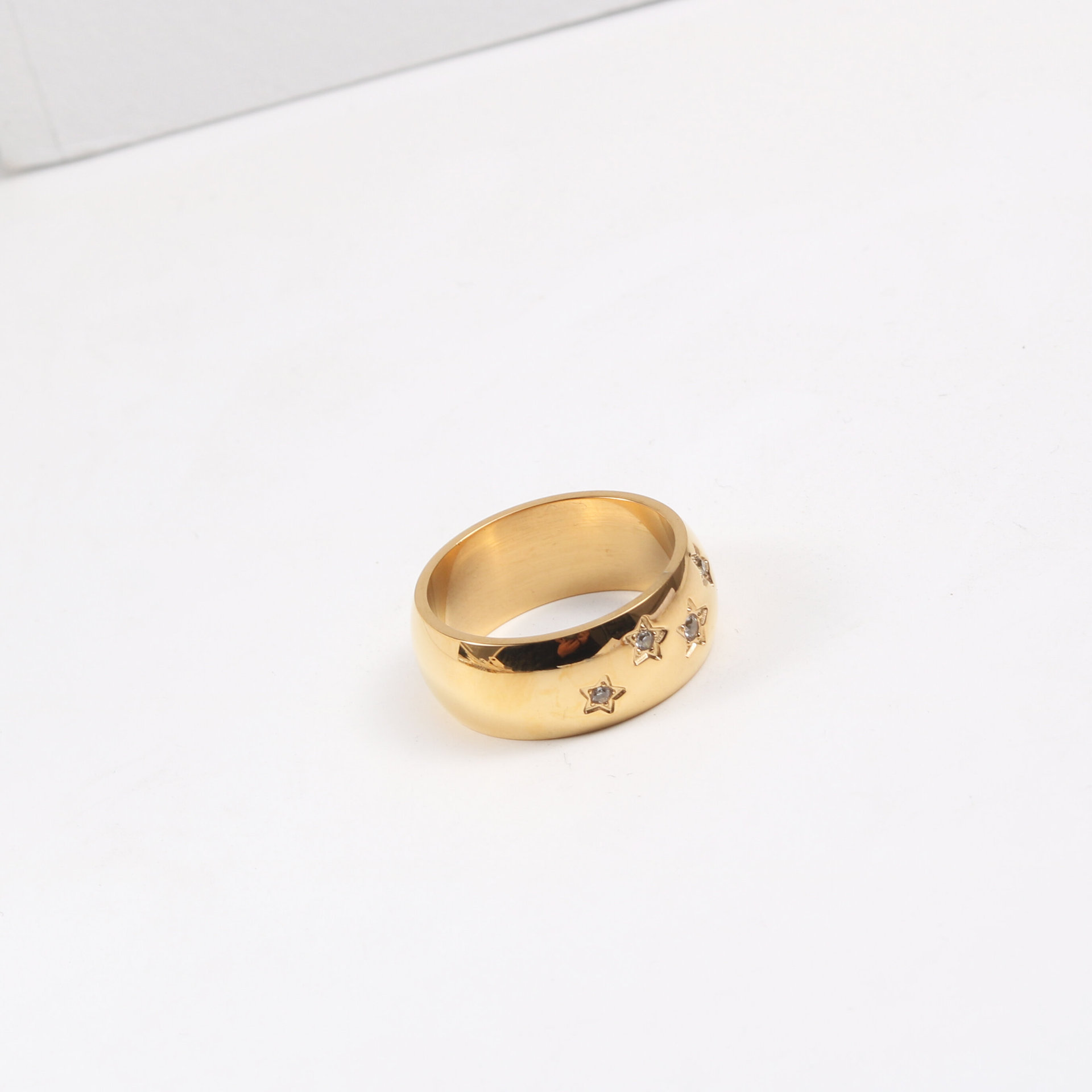 Star Zircon Inlaid Titanium Steel Electroplated 18K Gold Ring