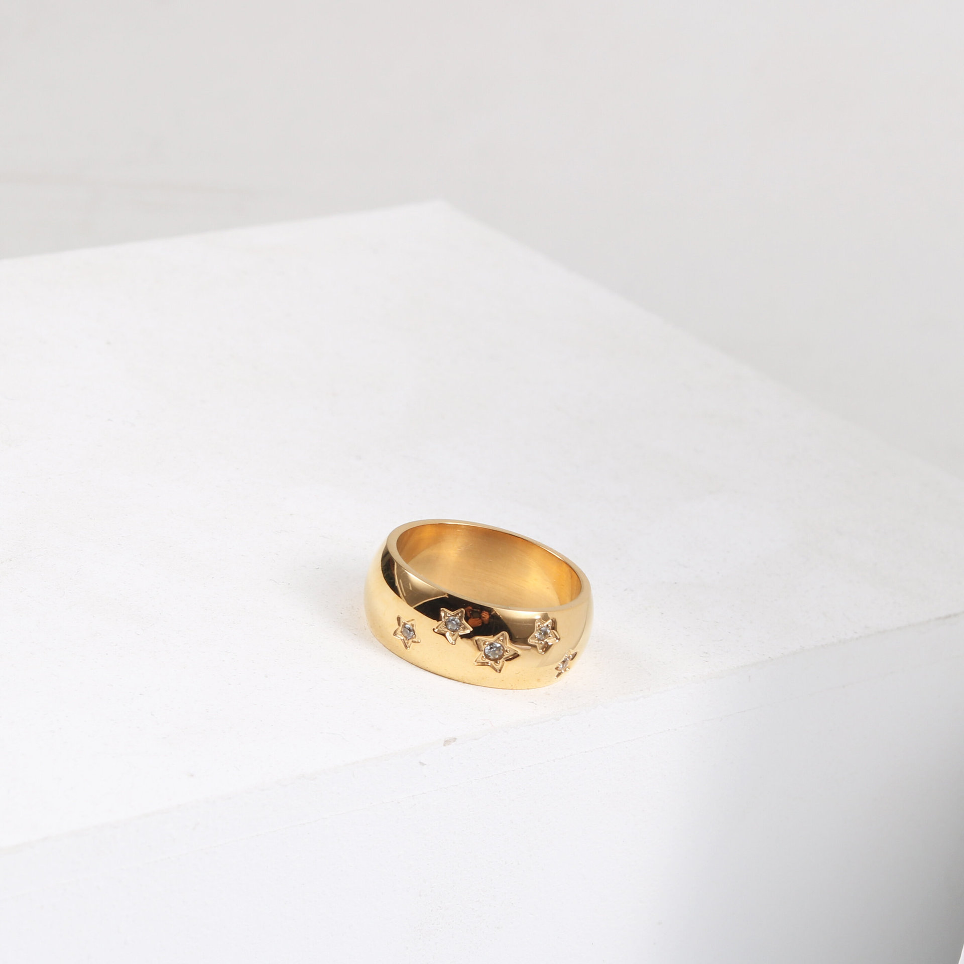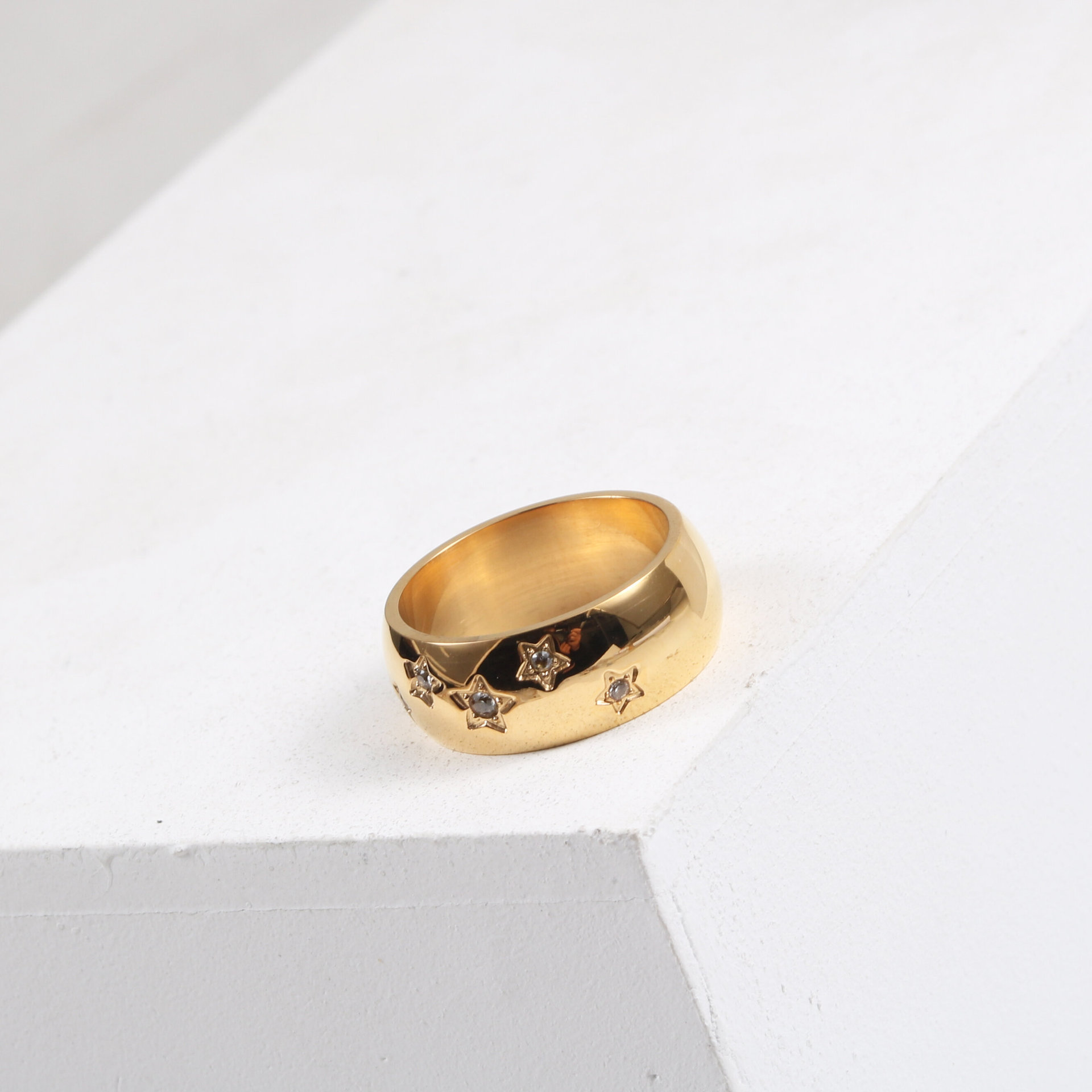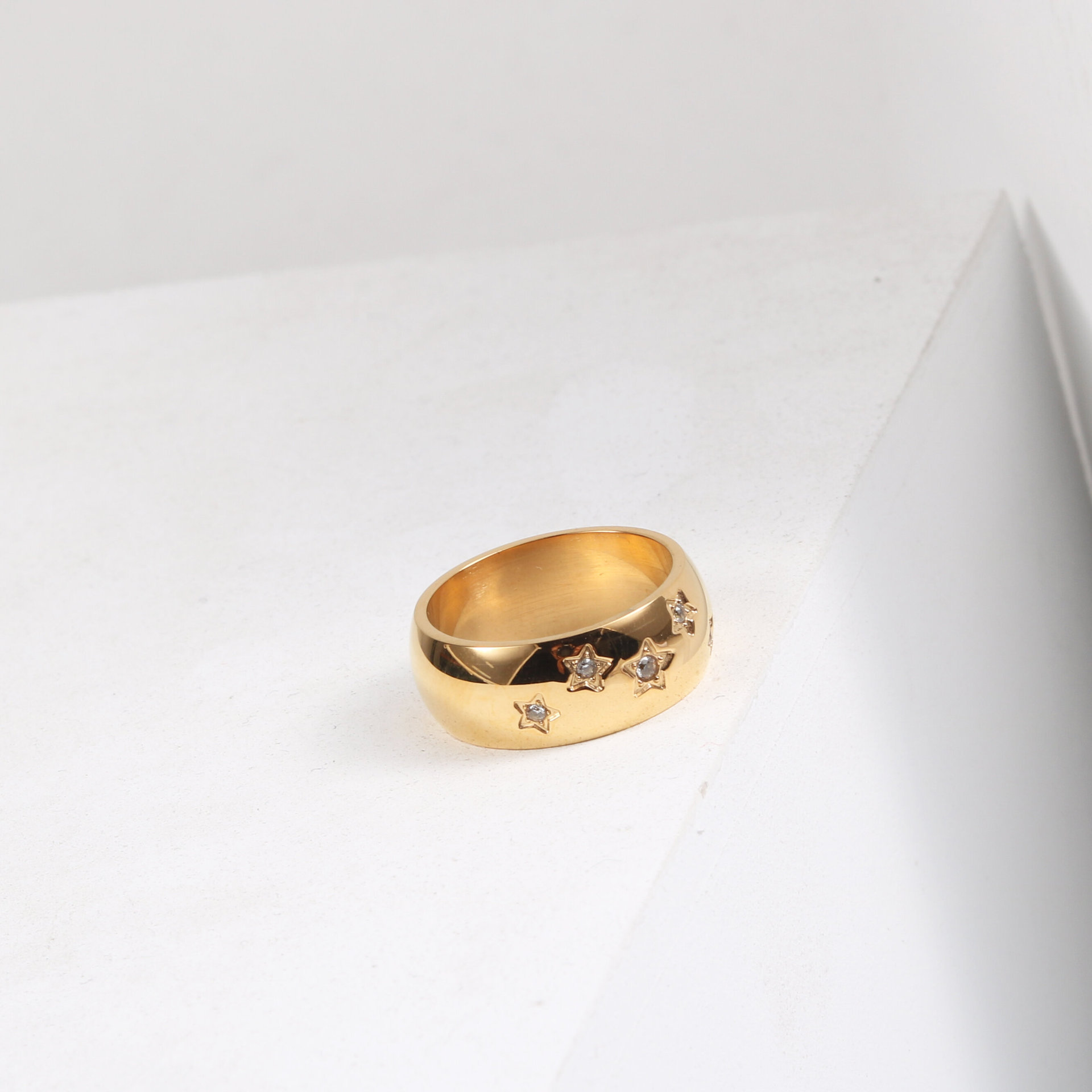 Star Zircon Inlaid Titanium Steel Electroplated 18K Gold Ring