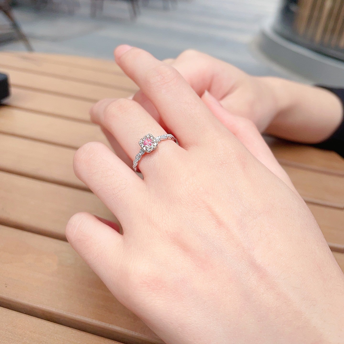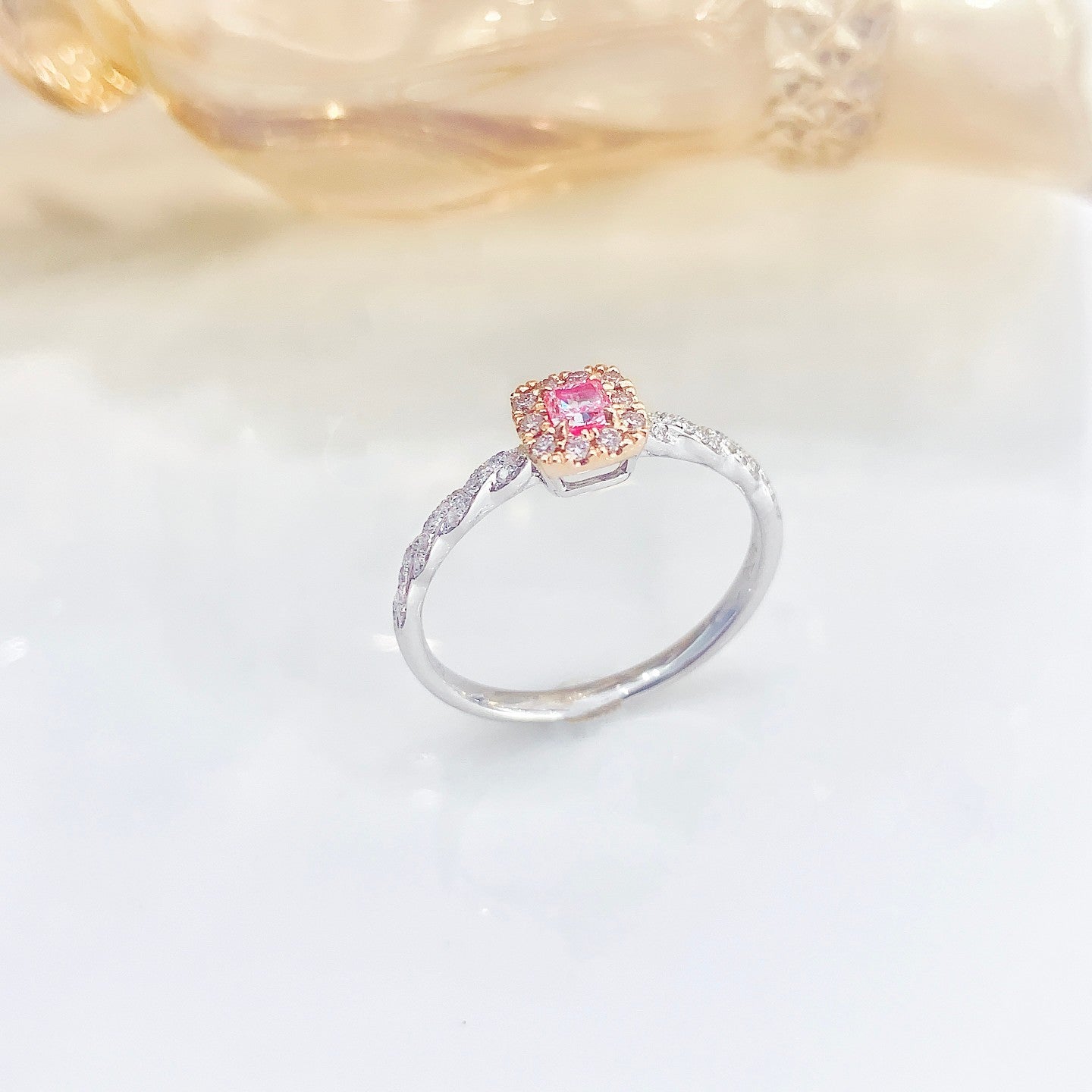 Hemmottele ylellisyyttä upealla 18K Pink Diamond Cushion Cut Twist Ring -renkaallamme. Tässä upeassa kappaleessa on keskellä oleva vaaleanpunainen timantti, joka painaa 0,15 ct, ja sitä täydentävät pienemmät timantit, joiden kokonaispaino on 0,19 ct, luoden häikäisevän valon ja kimaltamisen. Tämä sormus on valmistettu tarkasti ja huolellisesti yksityiskohtiin, ja se on todellinen korutaiteen mestariteos. Sen kokonaispaino on 2,13 g ja koko 16# (muokattava koko käyttömukavuuden vuoksi), joten se on täydellinen lisä mihin tahansa korukokoelmaan. Korosta tyyliäsi ja anna ilmoitus tällä upealla sormuksella. Tutustu hienojen korujen viehätysvoimaan ja tartu tilaisuuteen omistaa tämä hieno koru. Osta nyt ja omaksu sen tuoma eleganssi.