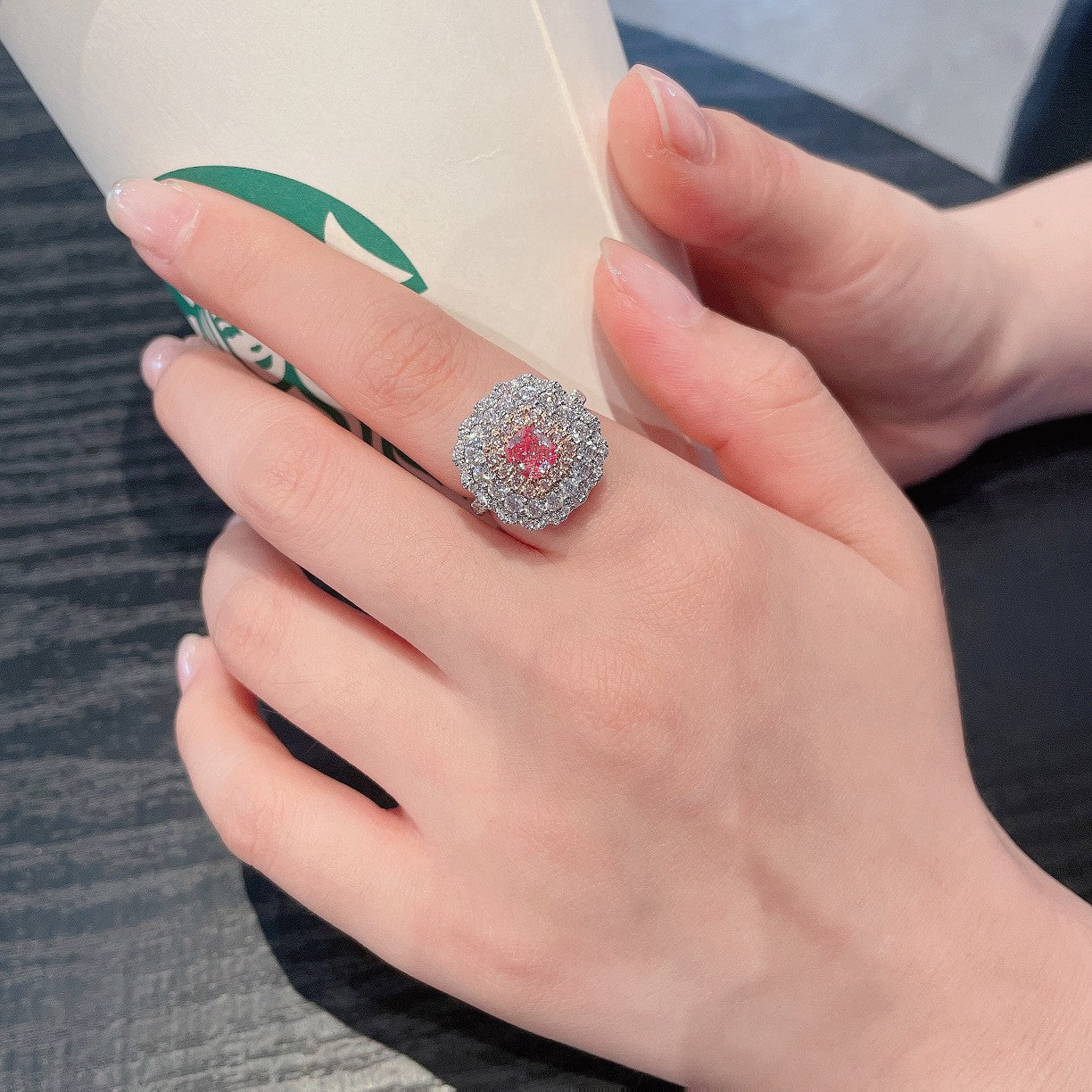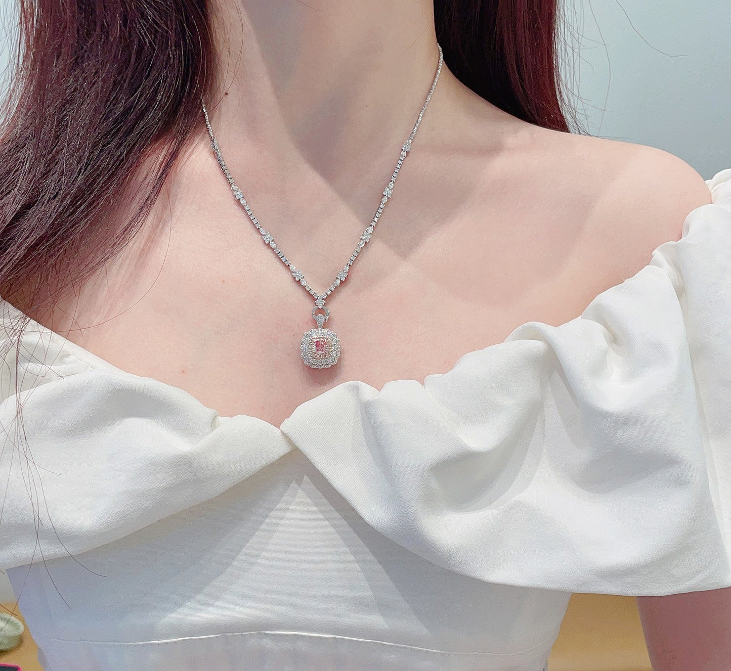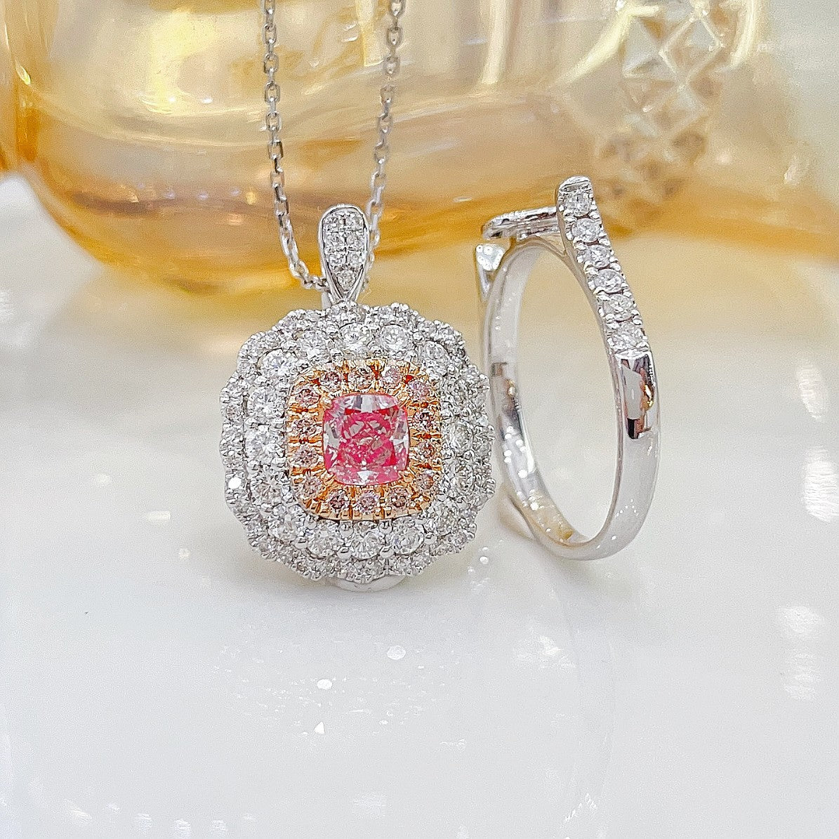 18K Pink Diamond Cushion Halo kaksisuuntaiset korut
