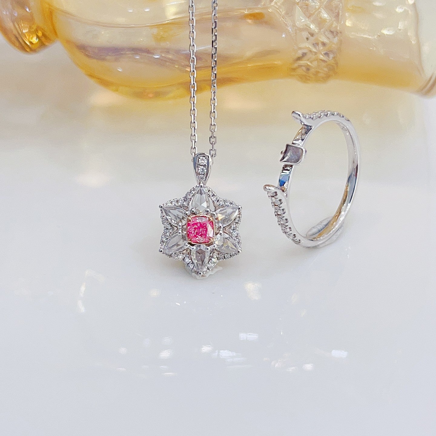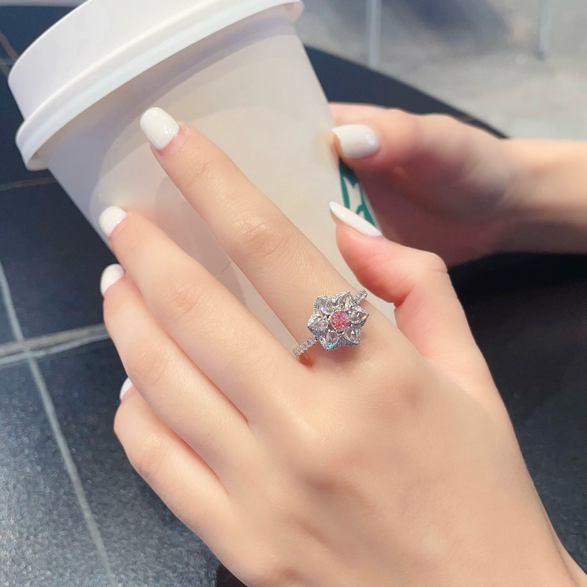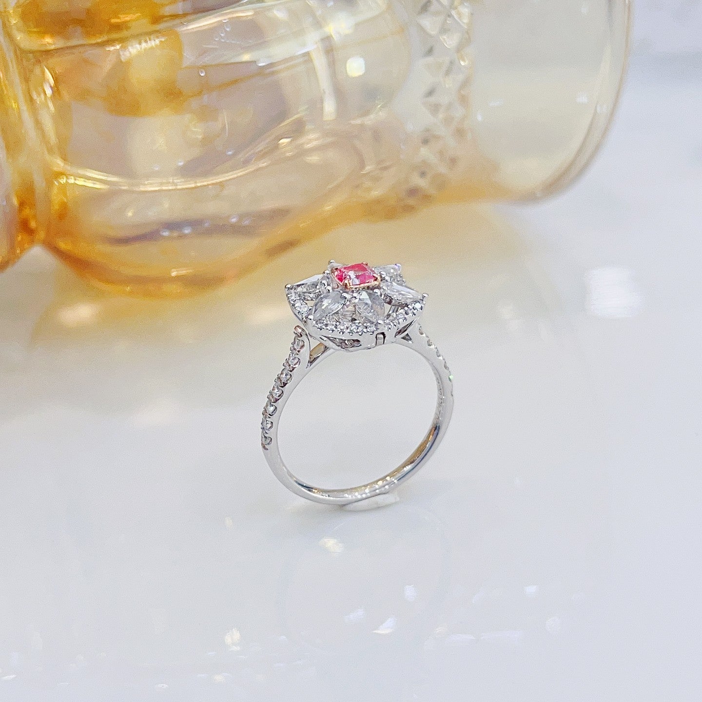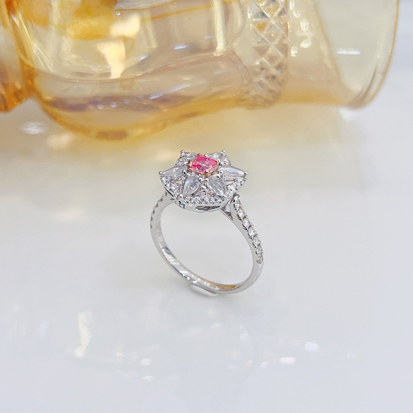 18K Vaaleanpunainen Timantti Tyyny Terälehti Kaksisuuntainen Sormus | Premium koruja