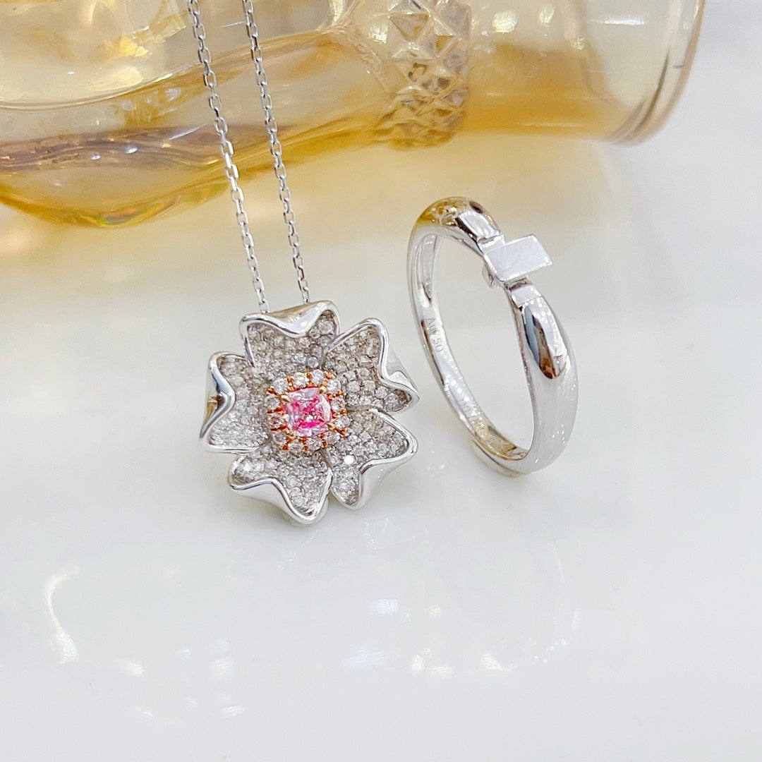 Tutustu 18K Pink Diamond Dolphin Arm Half-Bloom -kaksisuuntaisten korujen upeaan eleganssiin. Tässä upeassa kappaleessa on D0,18 ct:n pääkivi ja 0,45 ct:n korostuskivet, jotka kaikki on muotoiltu kiehtovaksi delfiinimalliksi. Tämän korun kokonaispaino on 5,86 g ja säädettävä sormuskoko 13,15 #, joten tämä koru ei ole vain ylellisyyden symboli, vaan tarjoaa myös yksilöllisen istuvuuden. Ymmärrä tämän ainutlaatuisen kaksisuuntaisen puettavan korun viehätys, joka vaivattomasti siirtyy päivästä iltaan, tehden niistä monipuolisen lisäyksen kokoelmaasi. Koe premium-korujen viehätys, joka resonoi ainutlaatuiseen tyyliisi. Korosta jokaista ilmettäsi ja tee ilmoitus tällä poikkeuksellisella kappaleella. Osta nyt ja nauti hienojen korujen ylellisyydestä.