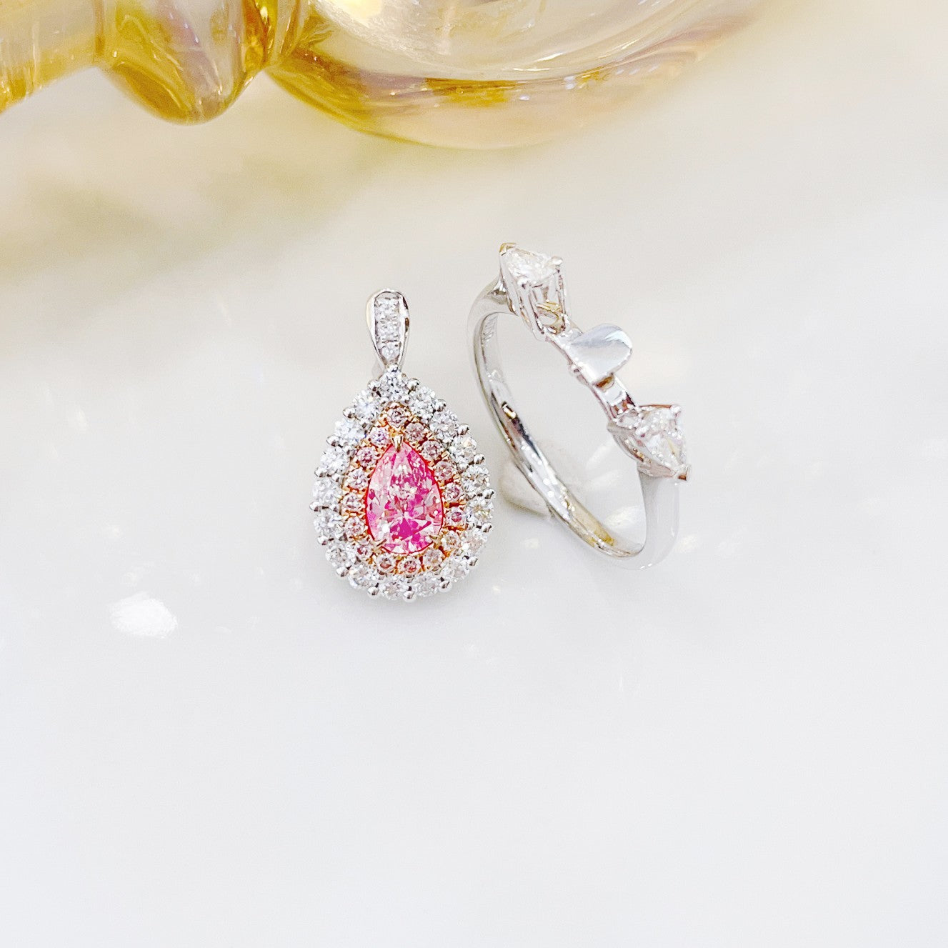 Tutustu 18K vaaleanpunaisen timantin kaksoispisarakorumme hienoon eleganssiin, joka on monipuolinen kaksisuuntainen koru, joka on suunniteltu valloittamaan. Tämä riipus on ylellisyyden mestariteos, jossa on D0,54 ct:n pääkivi ja 0,72 ct:n korostuskivet. Kokonaispaino 4,89 g ja koon 13# rengasaukko (säädettävä) lupaa sekä mukavuutta että tyyliä. Arvostetun kansainvälisen AGL-sertifikaatin mukana tämä riipus on osoitus sen aitoudesta ja laadusta. Hemmottele hienojen korujen viehätystä, joka ei vain korosta kauneuttasi, vaan heijastaa myös ainutlaatuista makuasi. Korosta kokoelmaasi tällä poikkeuksellisella kappaleella – anna lausunto ja tartu tilaisuuteen omistaa todellinen aarre. Tutustu premium-korujen lumoukseen jo tänään!