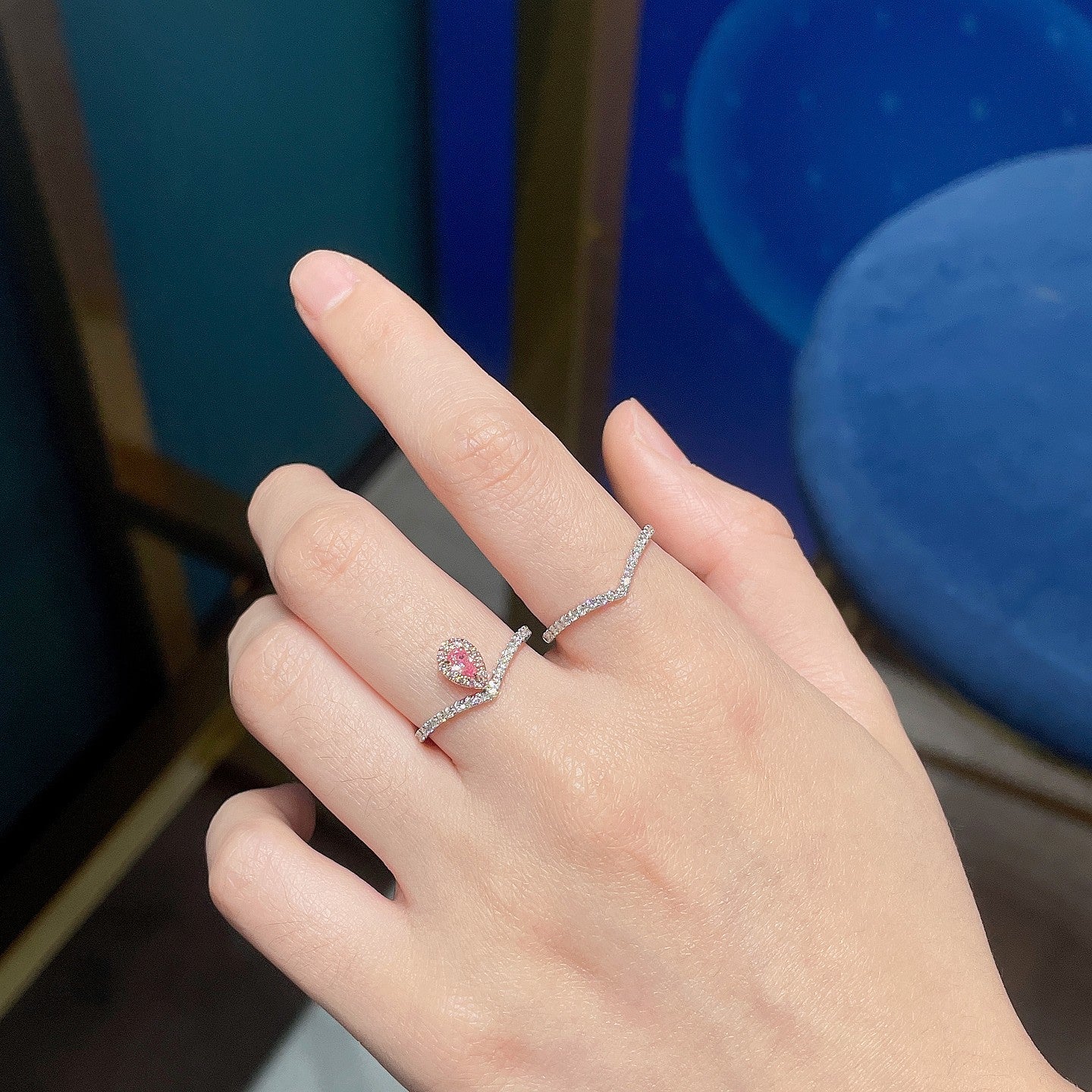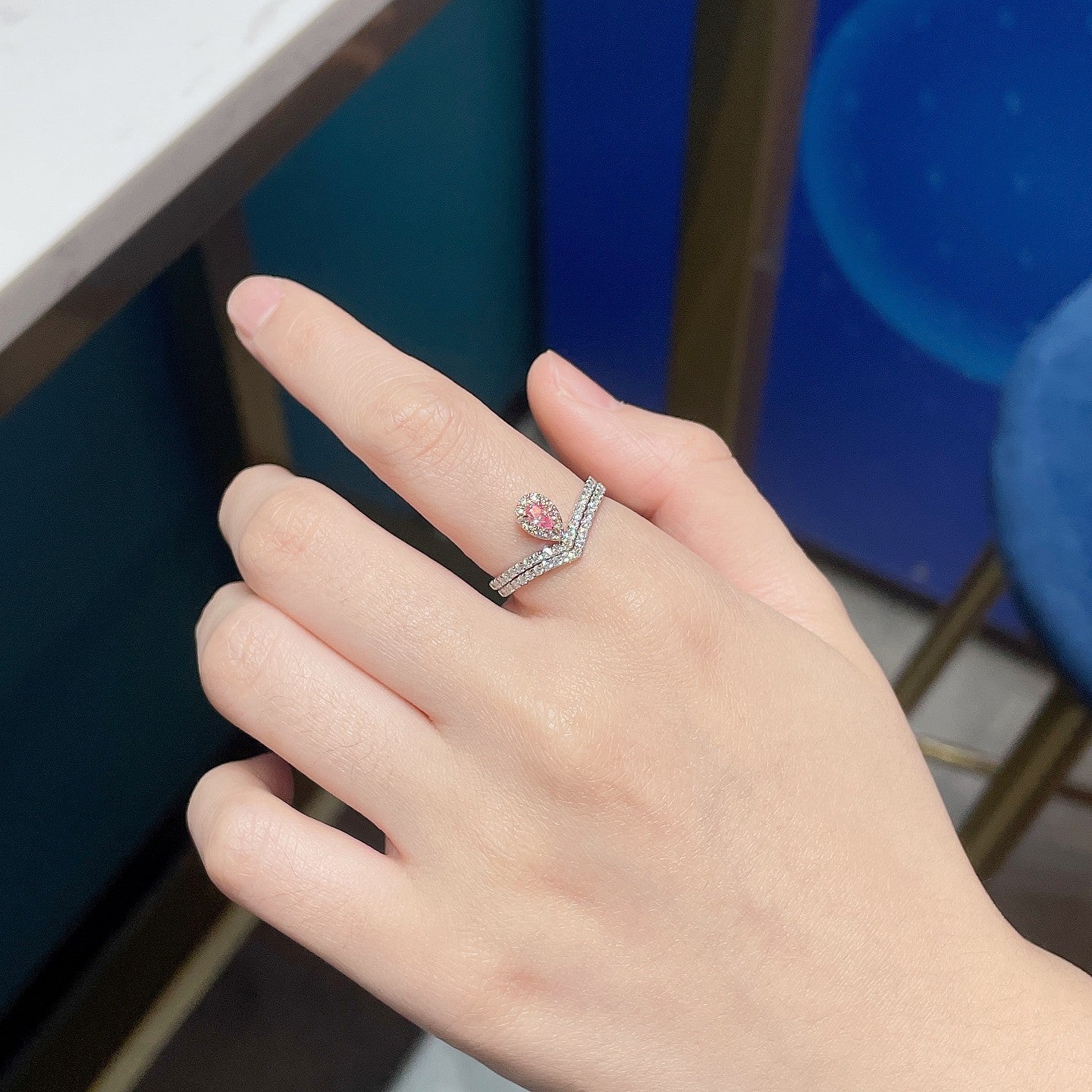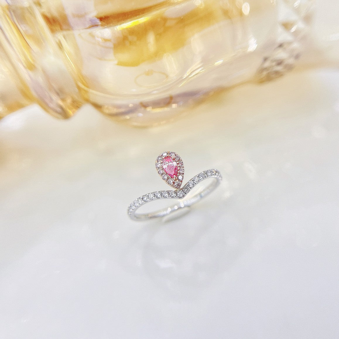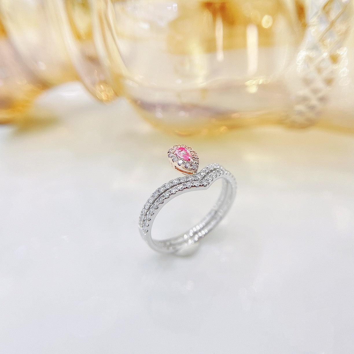 18K Pink Diamond Double V, kaksisuuntainen puettava sormus – hienoja koruja