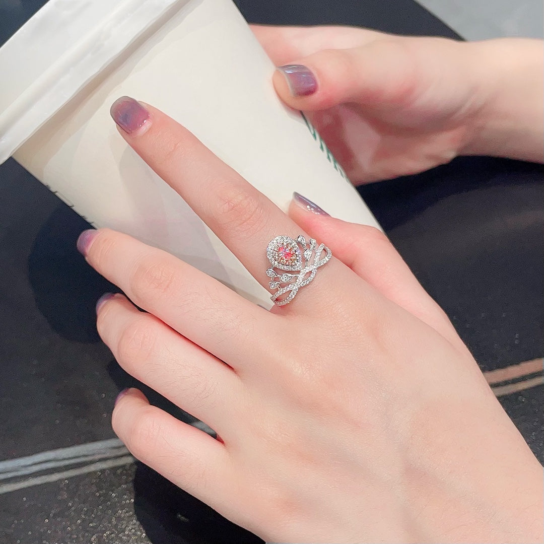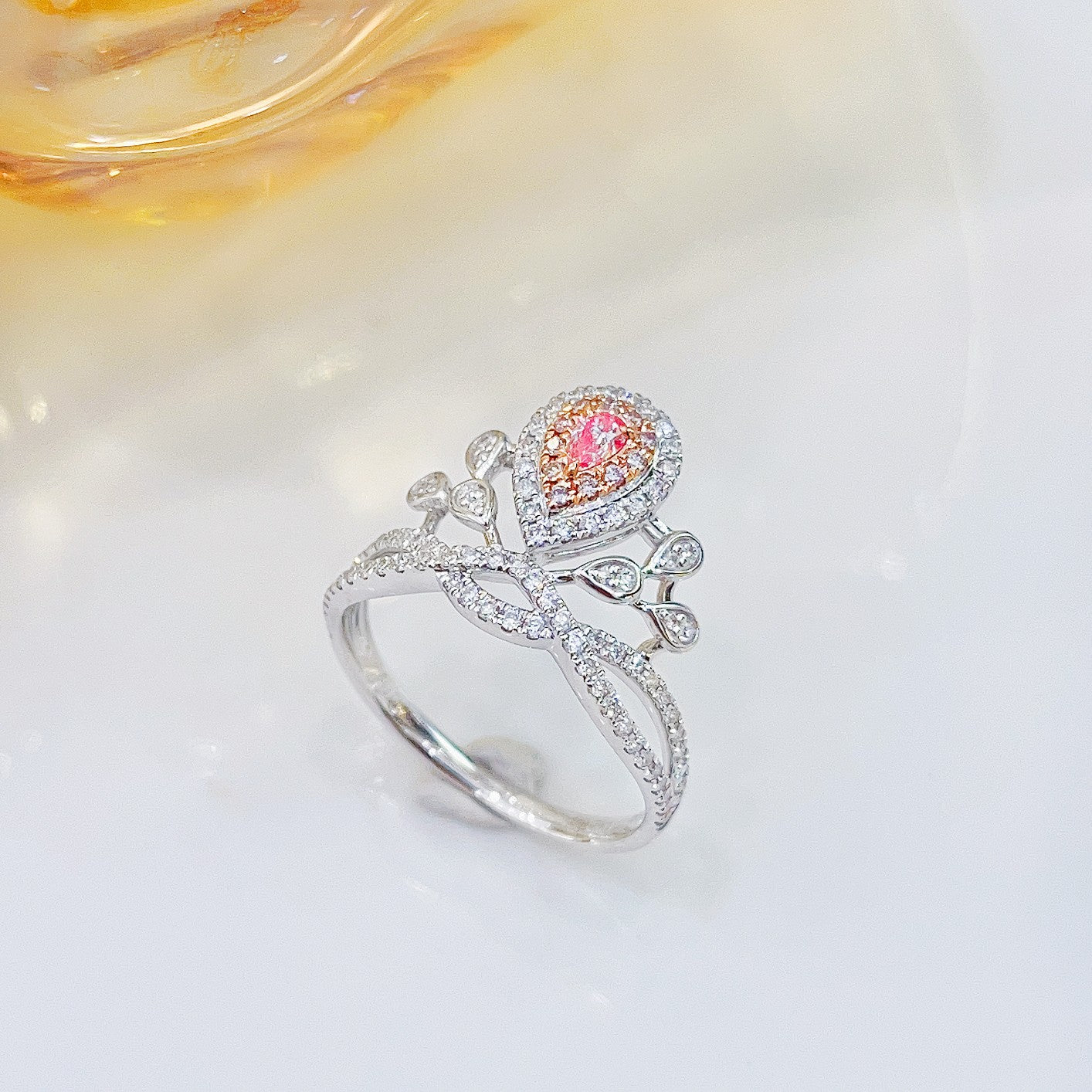 18K Pink Diamond Drop Crown Ring - hieno koru