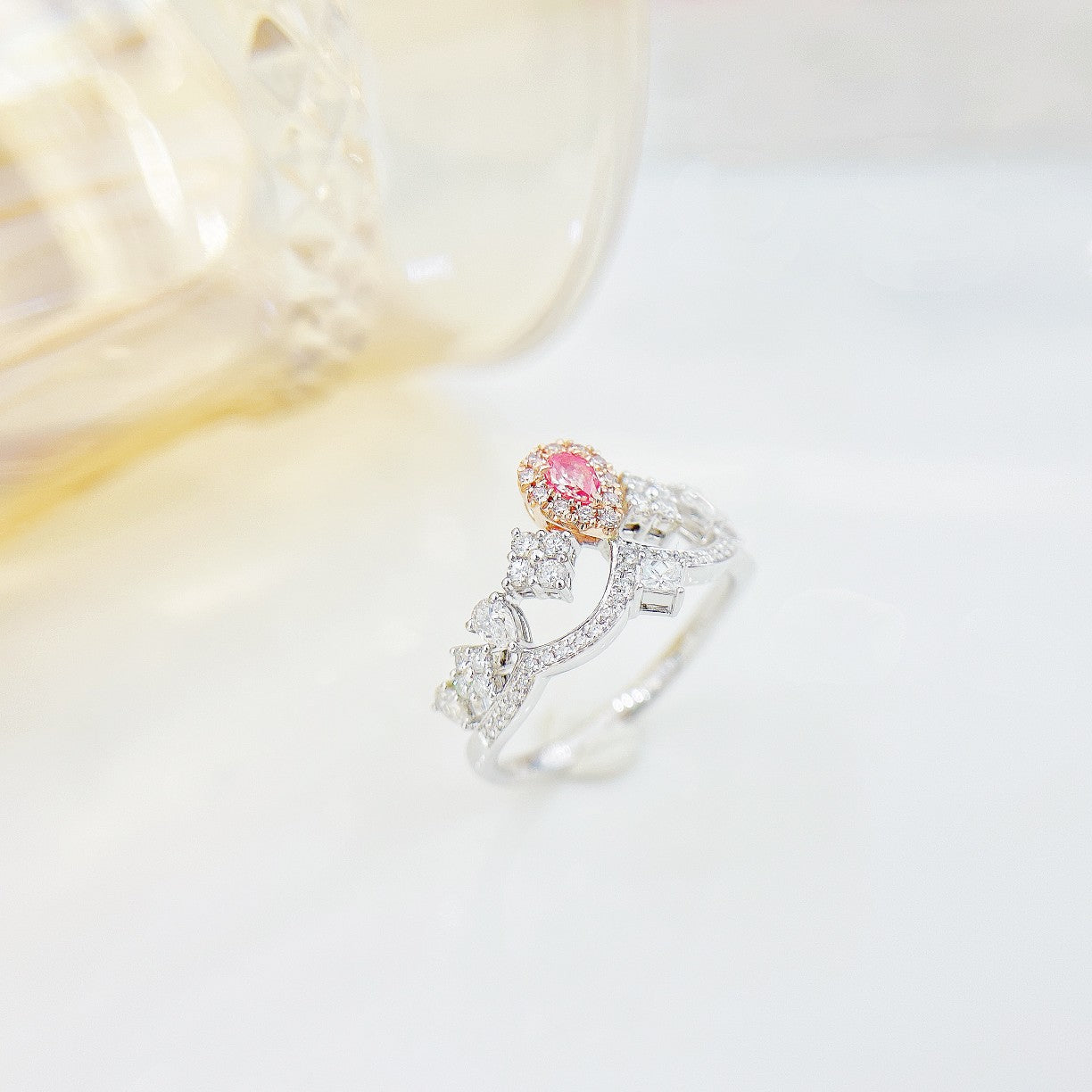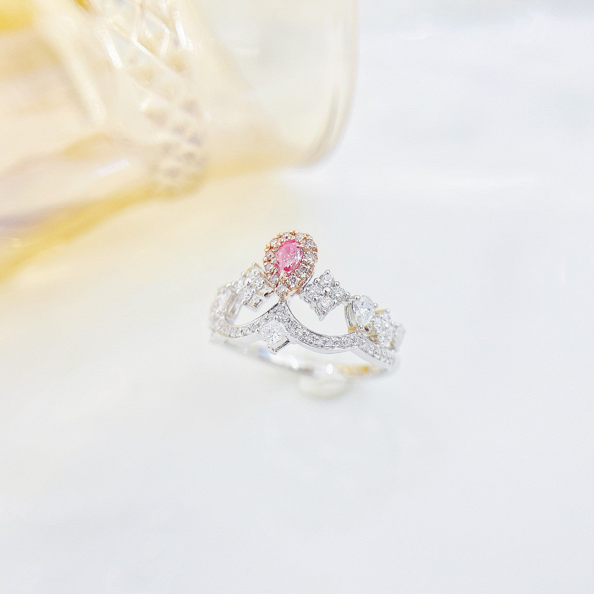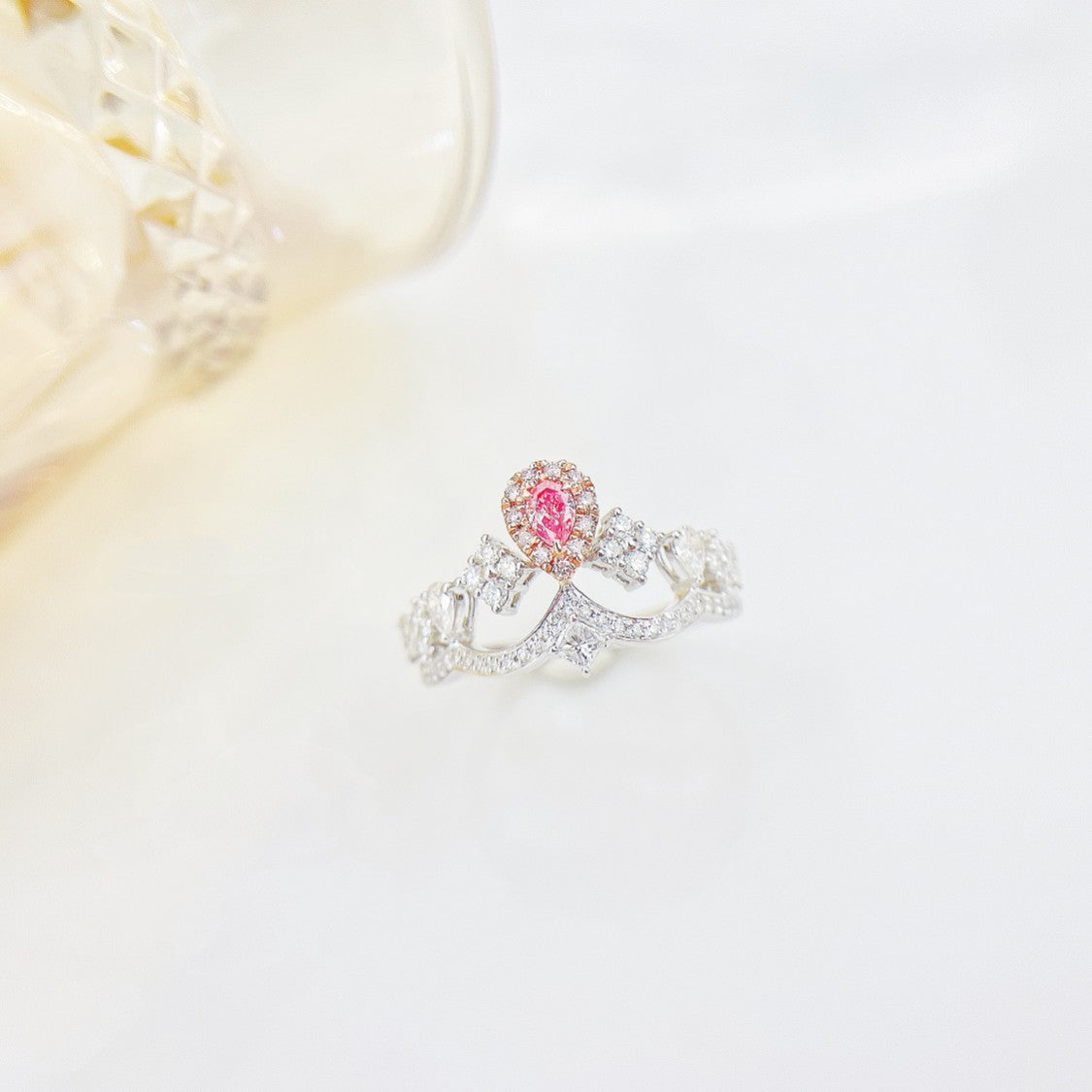 18K Pink Diamond Drop Princess Square -kruunusormus - ylellisiä koruja