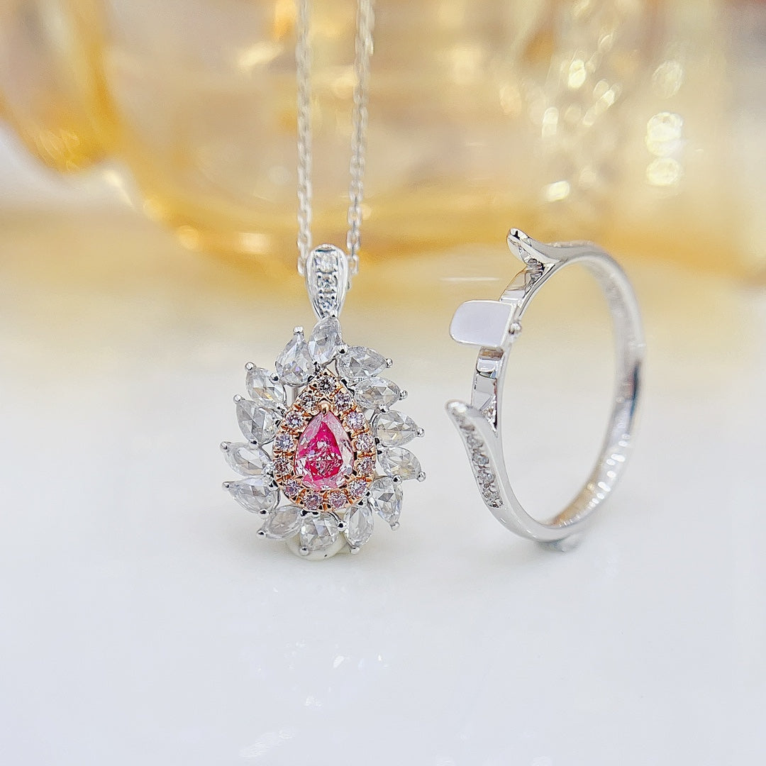 Tutustu 18K vaaleanpunaisen timanttipisarakullakorumme hienoon eleganssiin, joka on modernille naiselle suunniteltu mestariteos. Tämä kaksisuuntainen kulumismuoto mahdollistaa monipuolisen muotoilun, joten se on täydellinen lisä mihin tahansa korukokoelmaan. Keskiosassa on D0,26 ct vaaleanpunainen timantti, jota täydentävät do.87 ct korostuskivet, jotka kaikki on asetettu ylelliseen ruusukultaiseen kehykseen. Tämän kappaleen kokonaispaino on 4,31 g ja koko 14# (säädettävä), joten se ei ole vain tyylikäs, vaan myös mukava käyttää. AGL:n, kansainvälisen gemologisten sertifiointiviranomaisten, sertifioima nämä korut ovat osoitus niiden aitoudesta ja laadusta. Nauti ylellisyydestä ja tee tästä upeasta kappaleesta osa kokoelmaasi. Tutustu hienojen korujen kauneuteen ja korosta tyyliäsi jo tänään.