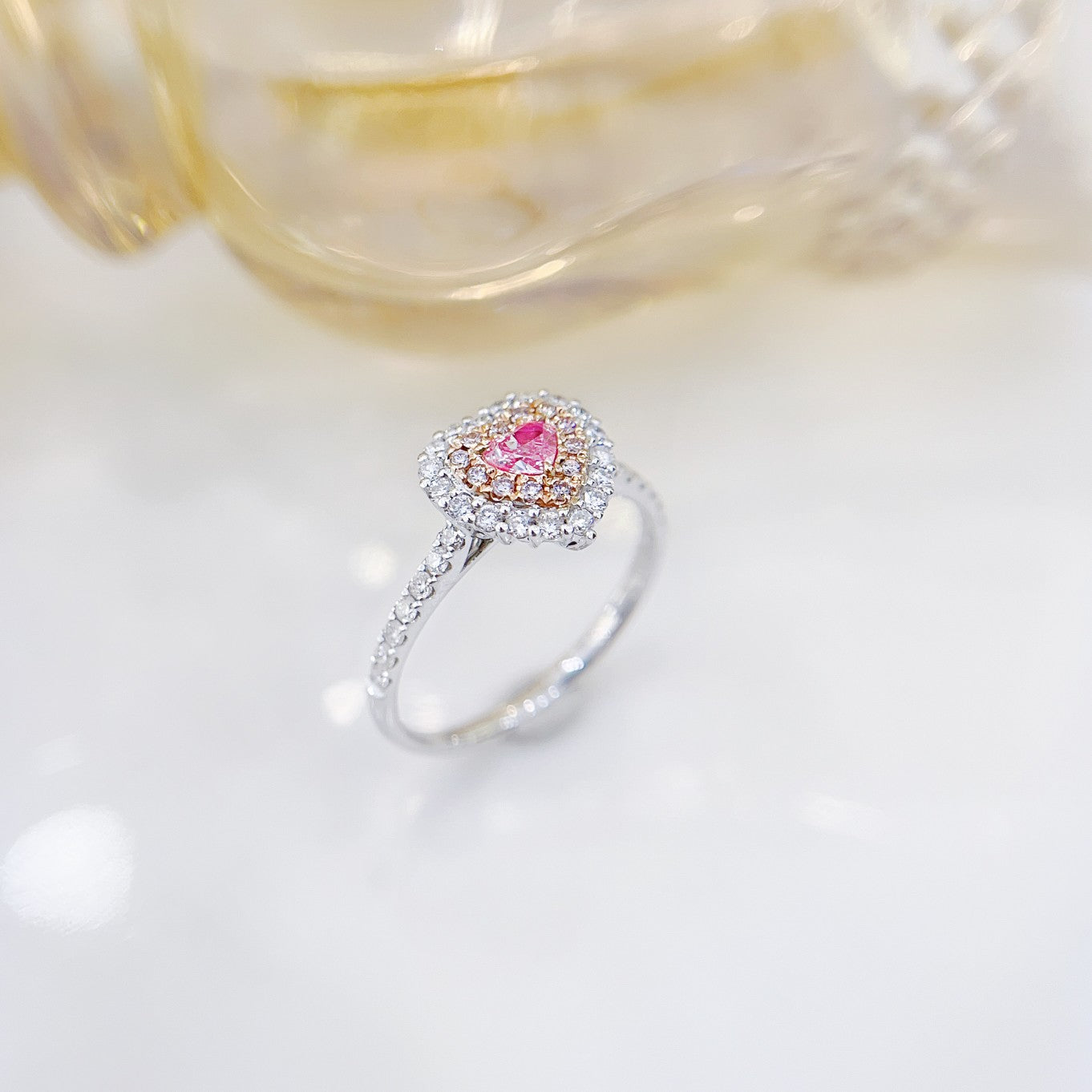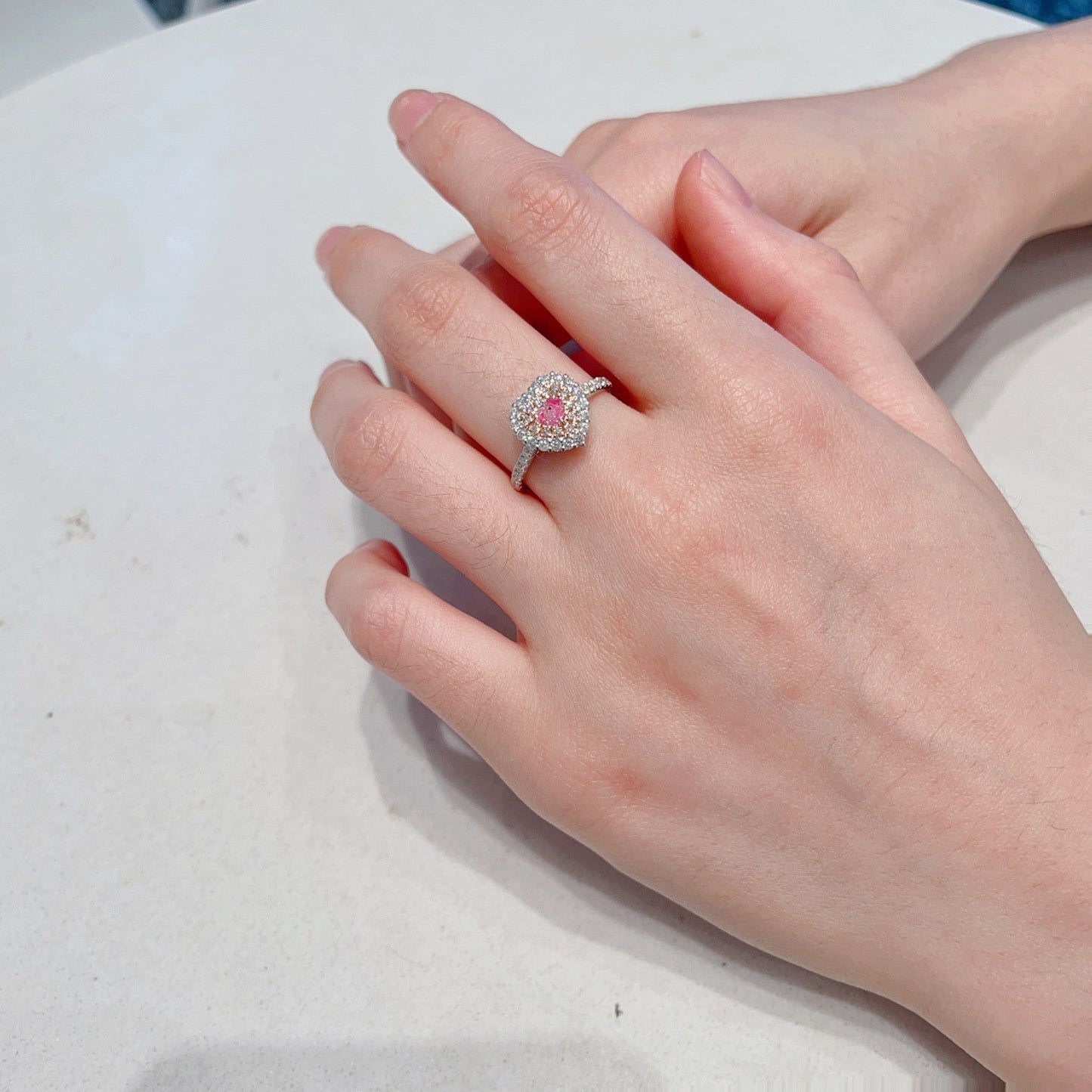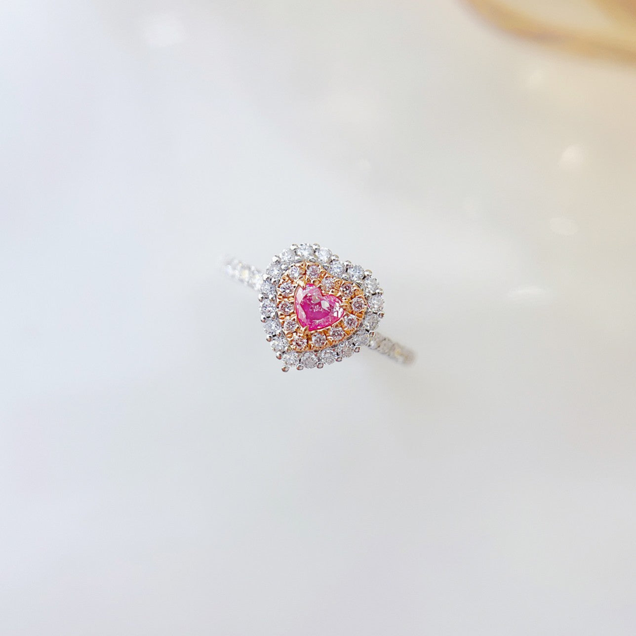 18K Vaaleanpunainen Timantti Sydänmuotoinen Klusterisormus | Ylellinen koru
