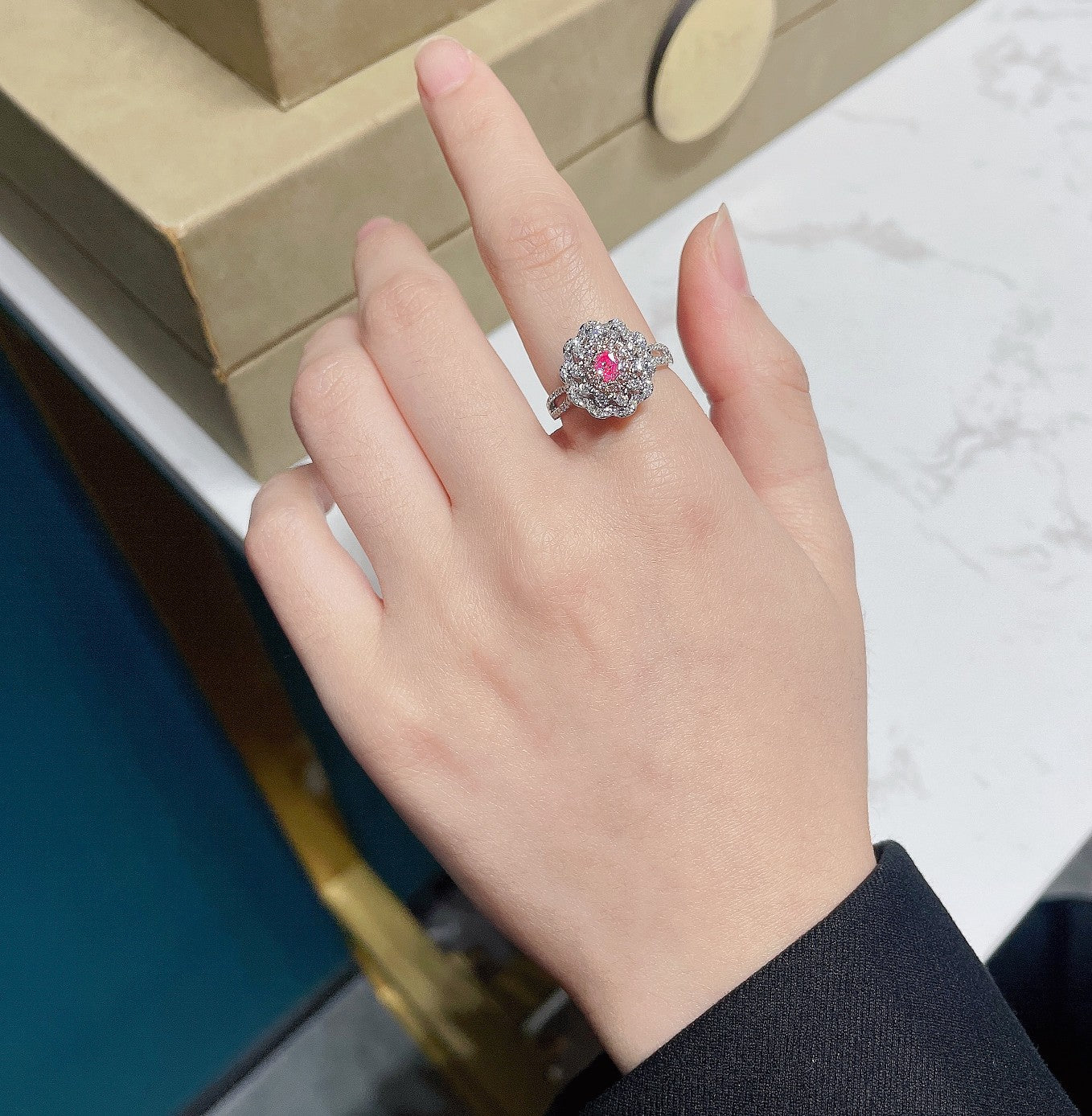 Korosta korukokoelmaasi tällä upealla sormuksella, joka yhdistää vaivattomasti romantiikkaa, glamouria ja monipuolisuutta. Tee julkilausuma jokaisella sormellasi ja ota haltuun vaaleanpunaisten timanttien houkuttelevuus. Älä missaa tilaisuutta koristella itseäsi tällä ainutlaatuisella kappaleella. Osta nyt ja koe luksuskorujen lumous, joka ylittää trendit.