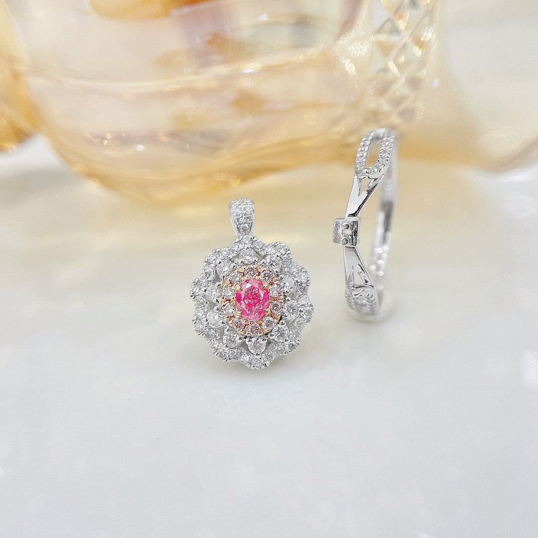 18K vaaleanpunainen timantti soikea auringonkukka muunnettava sormus | Korujen ilo