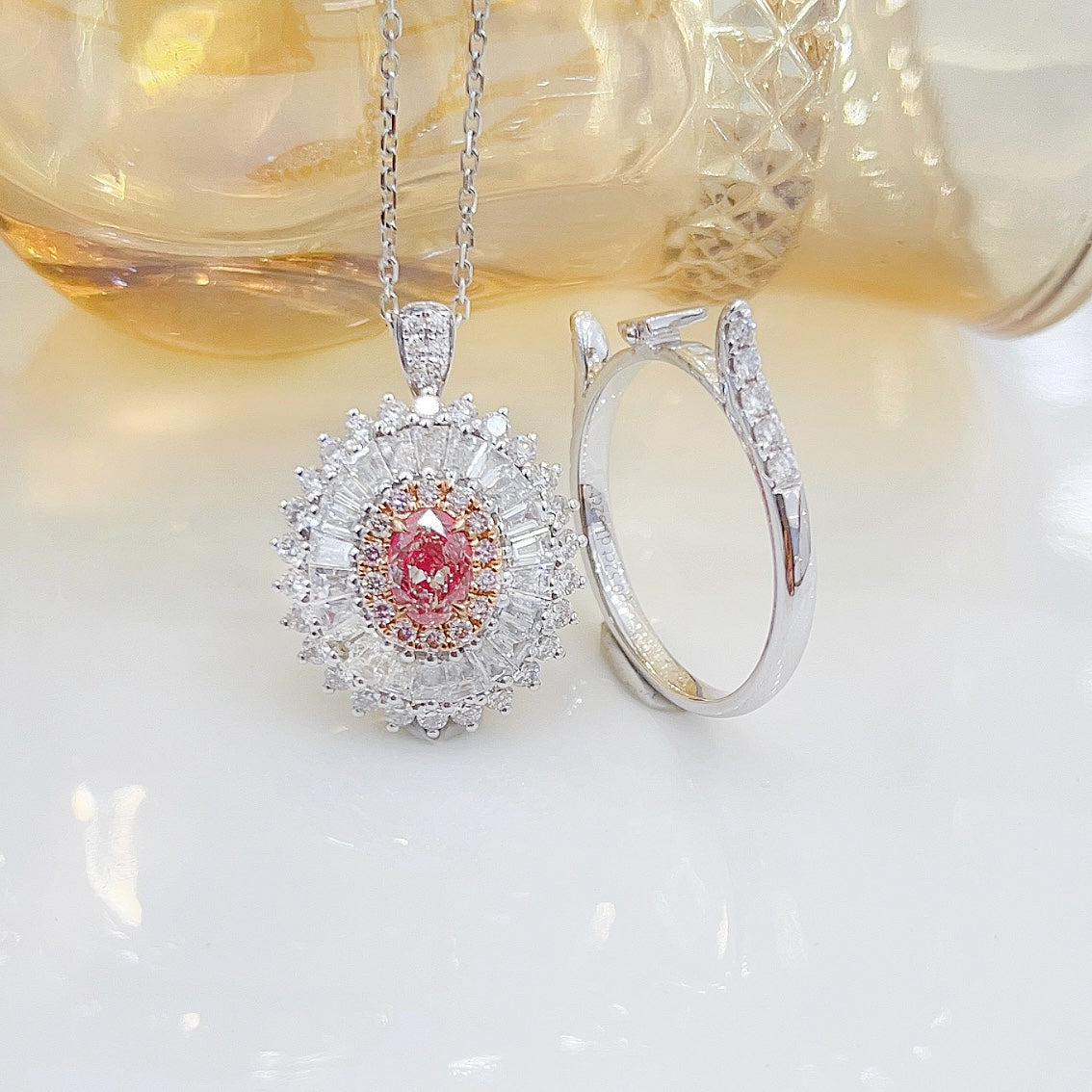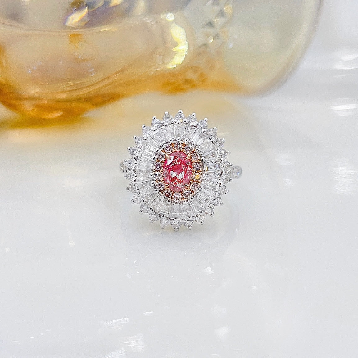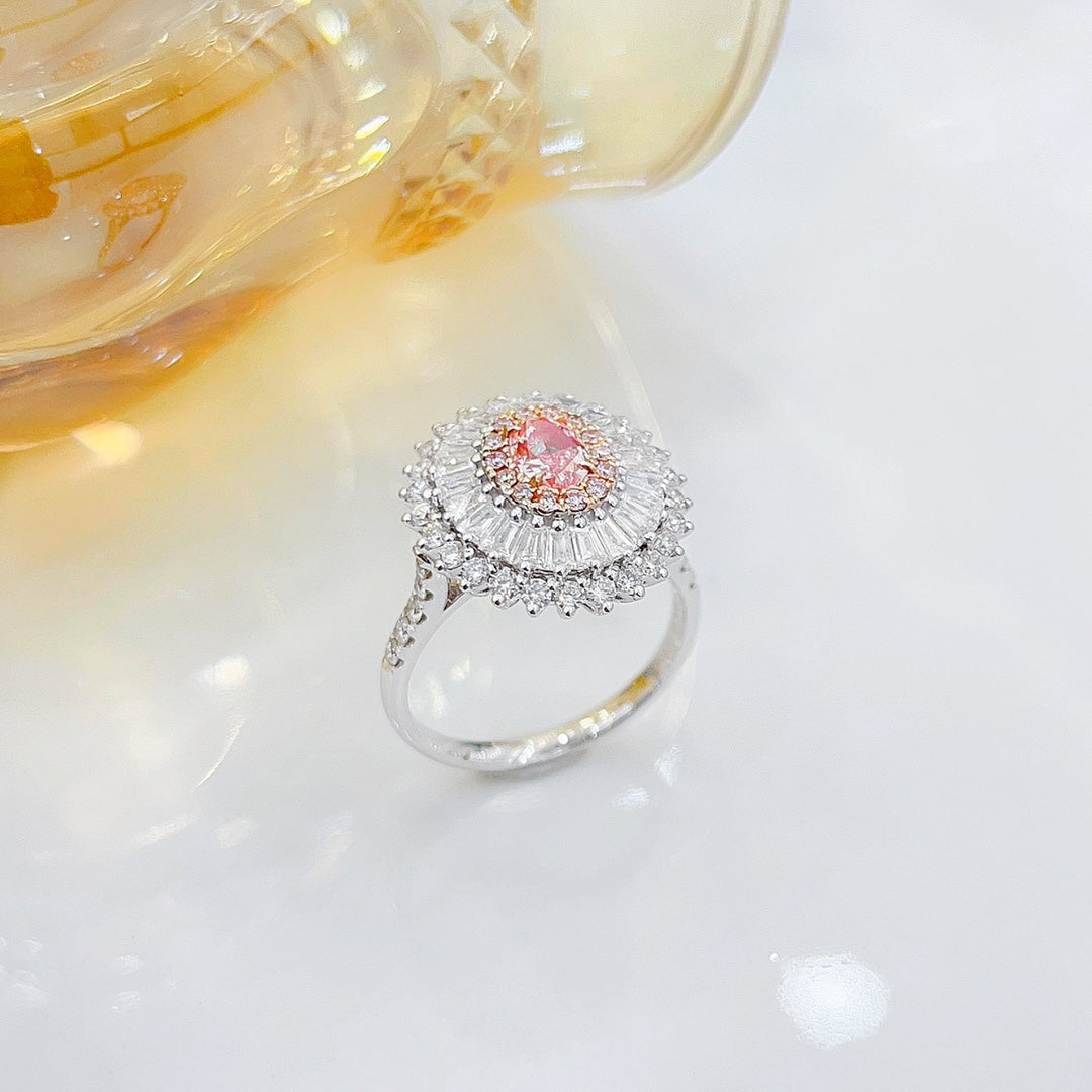 Tutustu 18K Pink Diamond Oval Trapezoid Two Way Wear -korujen upeaan eleganssiin, mestariteos, joka on suunniteltu täydellisesti. Tässä upeassa kappaleessa on keskellä oleva 0,52 ct painava timantti, jota täydentävät korostustimantit, joiden kokonaispaino on 1,52 ct, kaikki asetettu ylelliseen 18K kulta-asetukseen. Tämän korun kokonaispaino on 6,14 g ja muokattava sormuskoko 15 # (säädettävä), joten tämä koru on suunniteltu istumaan sinulle täydellisesti. Arvostetun kansainvälisen AGL-sertifikaatin mukana nämä korut eivät ainoastaan edusta ylellisyyttä, vaan myös takaavat aitouden ja laadun. Koe vaaleanpunaisten timanttien viehätys ja kohota korukokoelmaasi tällä ainutlaatuisella ja hienostuneella korulla. Älä missaa tilaisuutta tehdä tästä upeasta korusta omasi. Osta nyt ja ihaile sen tuomaa eleganssia.