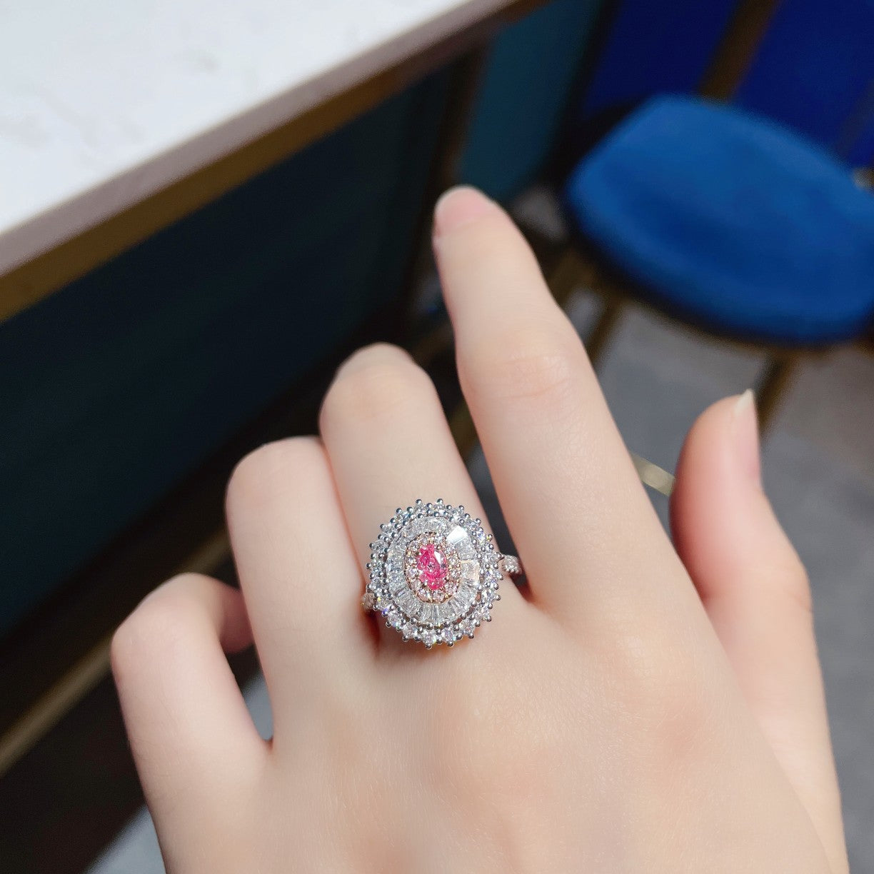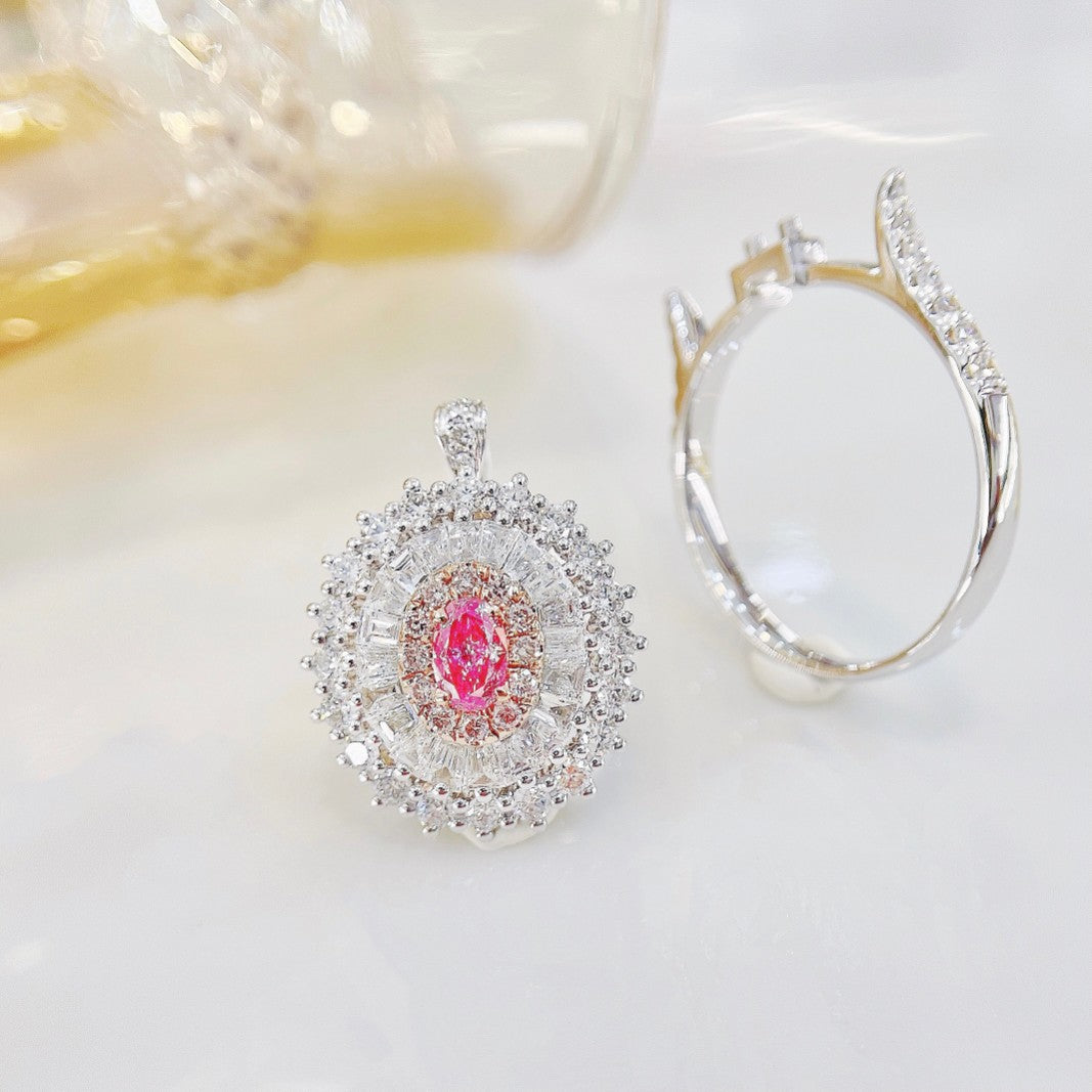 Hemmottele ylellisyyttä hienoilla 18K vaaleanpunaisilla timanttikoruillamme, joissa on soikea ja puolisuunnikkaan muotoinen kaksisuuntainen kulumismuoto. Pääkiven paino on 0,18 ct, ja sitä täydentää 1,15 ct hienoja timantteja, jotka kaikki on sijoitettu 5,59 g:n mestariteokseen. Muokattava koko 12# (säädettävä) tarjoaa sekä eleganssia että monipuolisuutta. Niille, jotka etsivät hieman erilaista kokoonpanoa, tarjoamme myös muunnelman, jossa on D0.20ct pääkive ja 副石d1.13ct, paino 5.51g ja saatavilla koossa 15# (myös säädettävä). Molemmat vaihtoehdot huokuvat hienostuneisuutta ja korostavat varmasti mitä tahansa kokonaisuutta. Ymmärrä vaaleanpunaisten timanttien houkuttelevuutta ja korosta korukokoelmaasi tällä ainutlaatuisella ja kiehtovalla kappaleella. Koe lumo ja tee ostoksesi tänään koristellaksesi itsesi tällä upealla korulla.