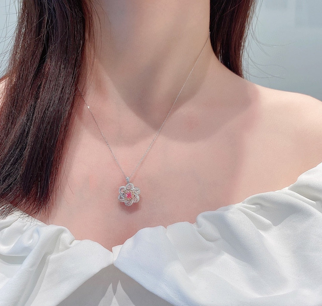 18K vaaleanpunainen timanttityynyn ruusu leikattu kaksisuuntainen koru