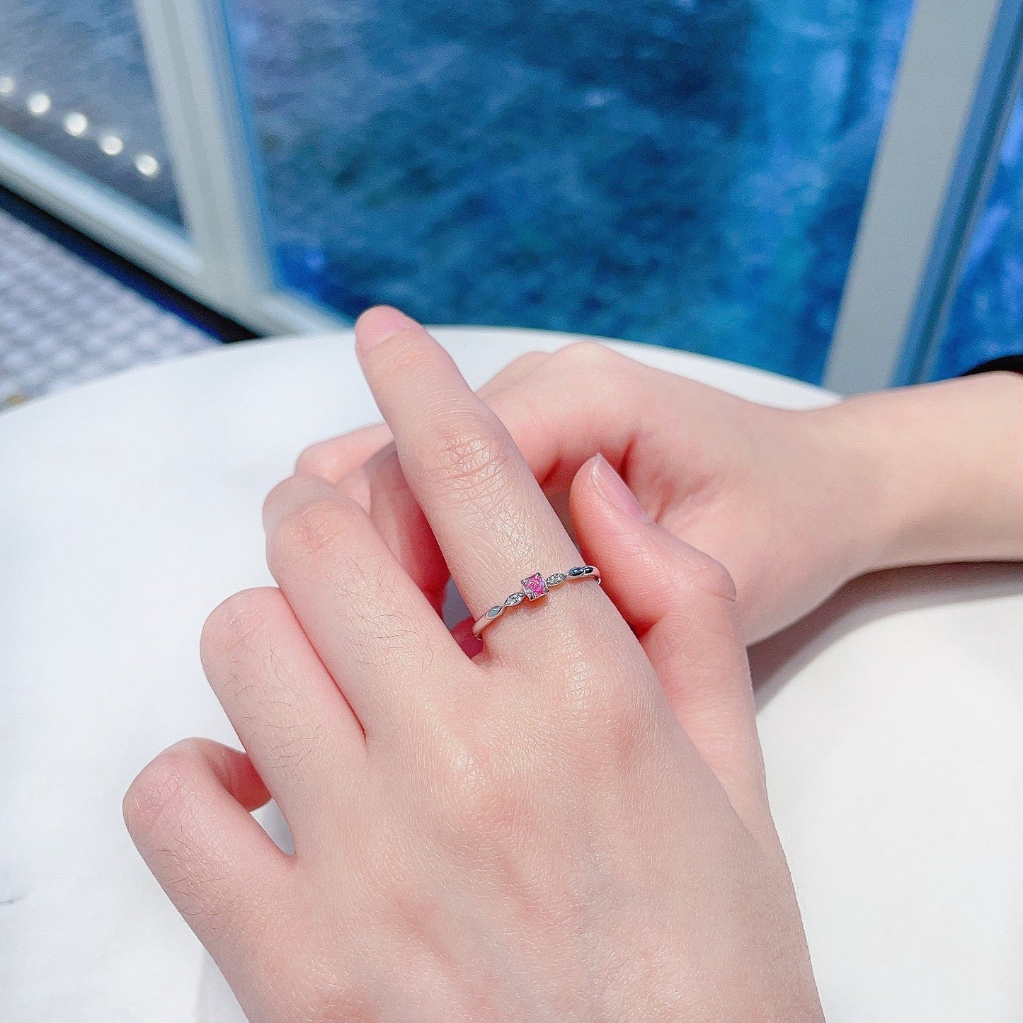 18K vaaleanpunainen timanttipasianssi tyynyleikattu minisormus | Premium koruja