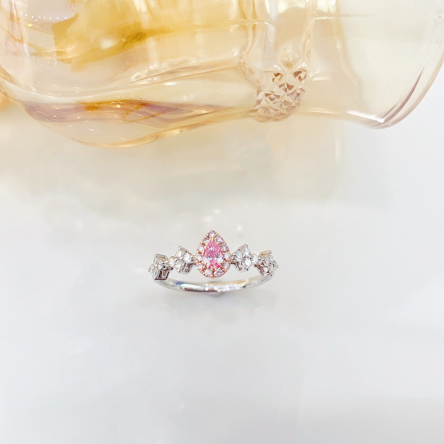 Hemmottele ylellisyyttä upealla 18K Pink Diamond Waterdrop Four-Leaf Clover Ring -sormuksella. Tässä tarkasti muotoillussa sormuksessa on D0,12 ct:n pääkivi ja 0,35 ct:n korostuskivet, jotka kaikki on asetettu herkkään muotoiluun, joka symboloi onnea ja eleganssia. Tämän korun kokonaispaino on 1,98 g ja sormuksen kokoa muutettava 12#, joten tämä koru on suunniteltu istumaan sinulle täydellisesti. Ymmärrä vaaleanpunaisten timanttien houkuttelevuutta ja korosta tyyliäsi tällä ainutlaatuisella ja hienostuneella sormuksella. Tee lausunto ja tartu tilaisuuteen omistaa tämä merkittävä koru tänään. Tutustu kokoelmaamme ja koe korkealaatuisten korujen lumoa enemmän kuin koskaan ennen.