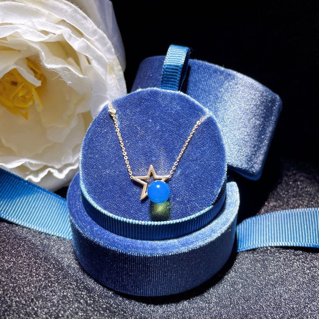 Hieno 18K kultaa upotettu Dominikaanisensininen meripihkariipus - koruja rakastetuille hetkille