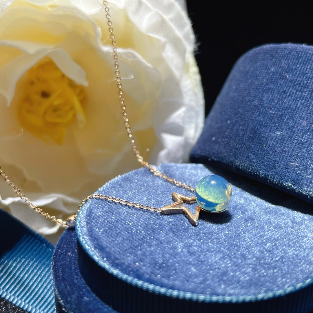 Ota kesäpäivänseisauksen saapuminen vastaan tällä upealla 18K kullalla upotetulla Dominikaanisen sinisellä meripihkakorulla, joka on osoitus rakastetuista hetkistä ja ajattomasta eleganssista. Tässä täydellisyyteen suunnitellussa korussa on kiehtova 6 mm:n pääkivi, jonka GIC on sertifioinut aidoksi Dominicasta peräisin olevaksi. Sen lumoavat siniset sävyt tuovat mieleen luonnon rauhallisuuden, mikä tekee siitä täydellisen asusteen täydentämään mitä tahansa asua samalla kun se huokuu hienostuneisuutta.