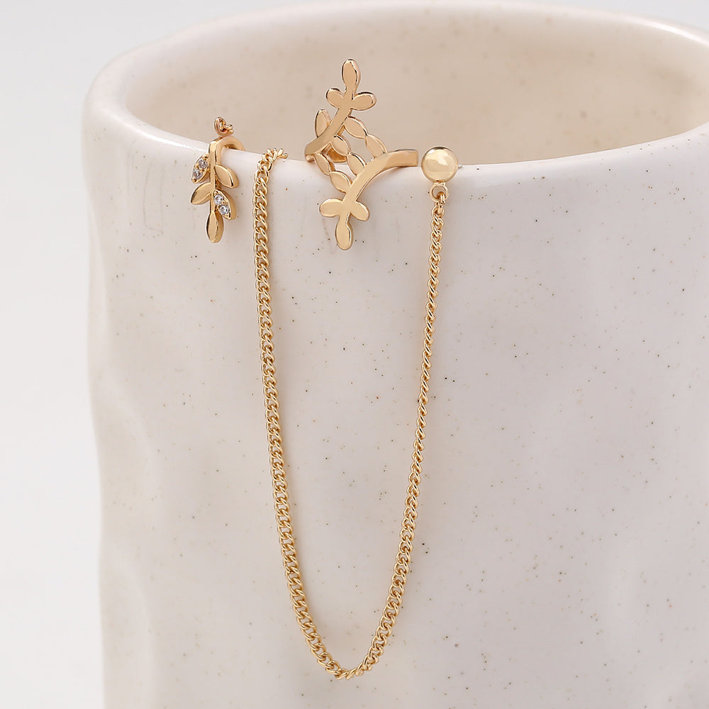 Indian Dance Nose Ring Jewelry Set Ear Clip Earring Leaf Nose Nail Nose Chain One Pierced Jewelry