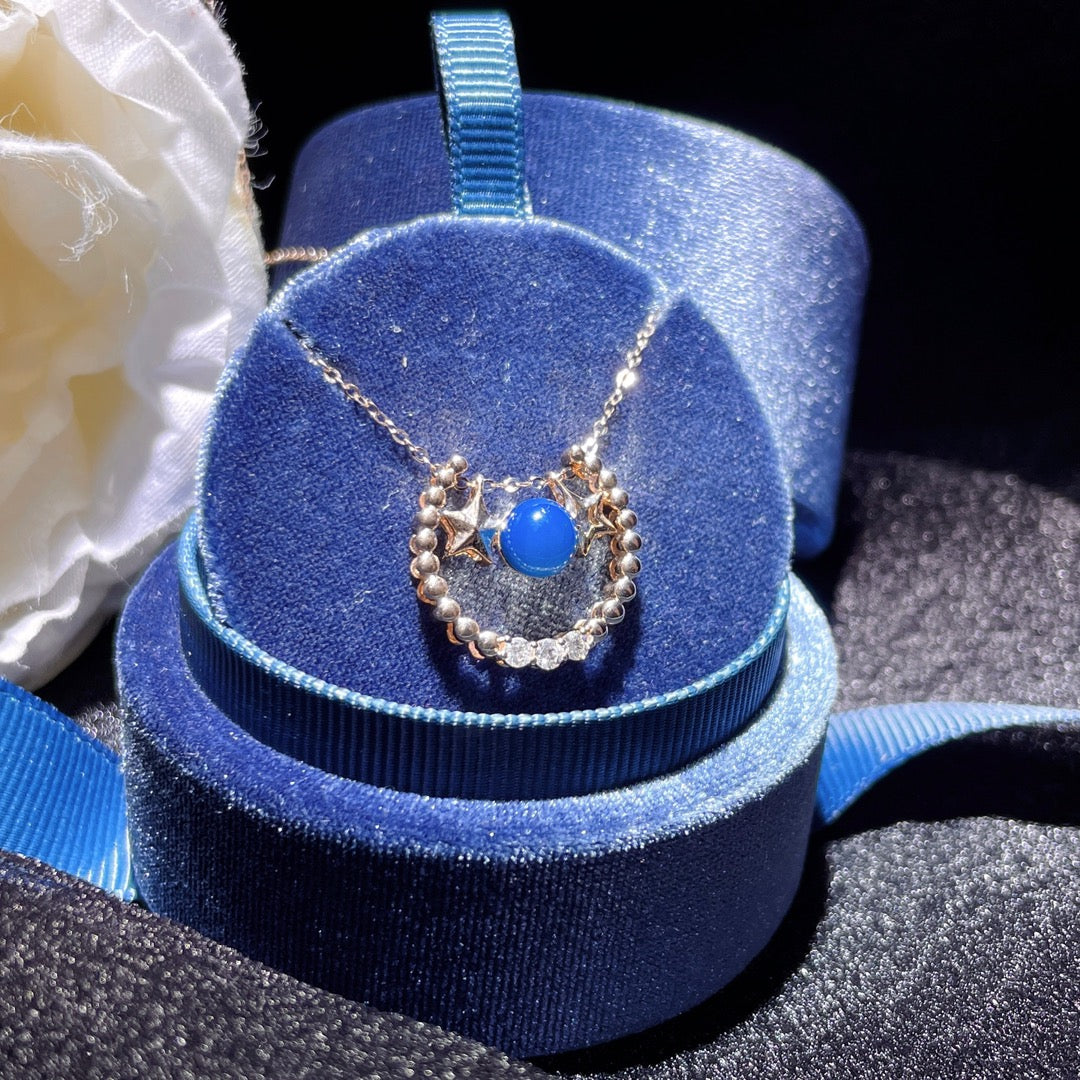 शरद ऋतु में वसंत की गूंज: 18K गोल्ड एंबेडेड डोमिनिकन ब्लू एम्बर पेंडेंट - उत्तम आभूषण