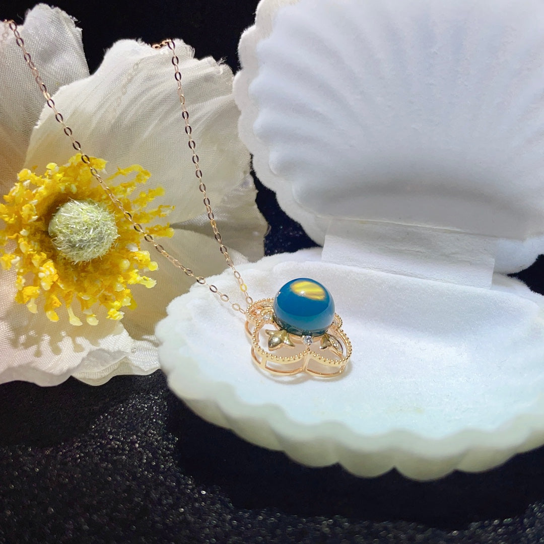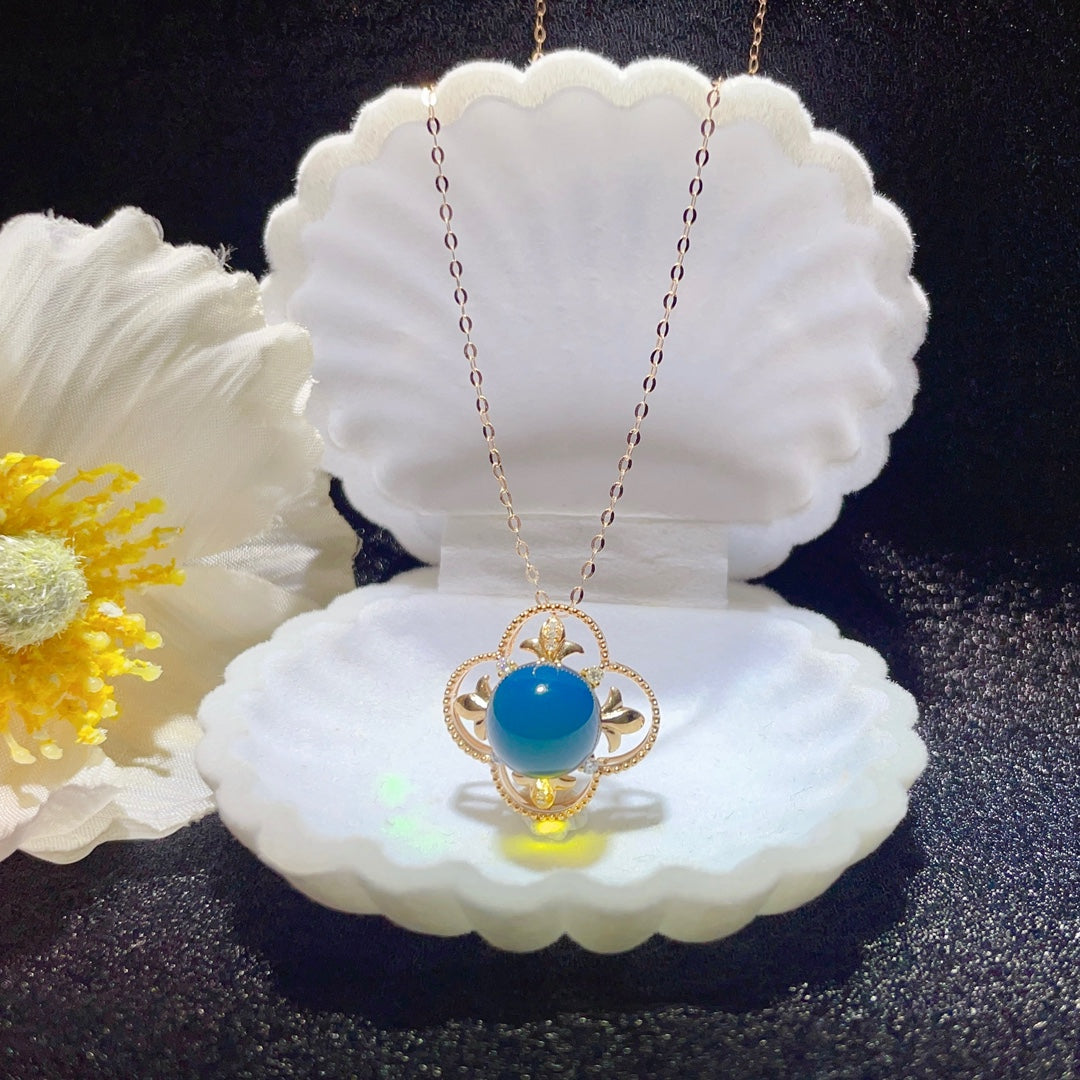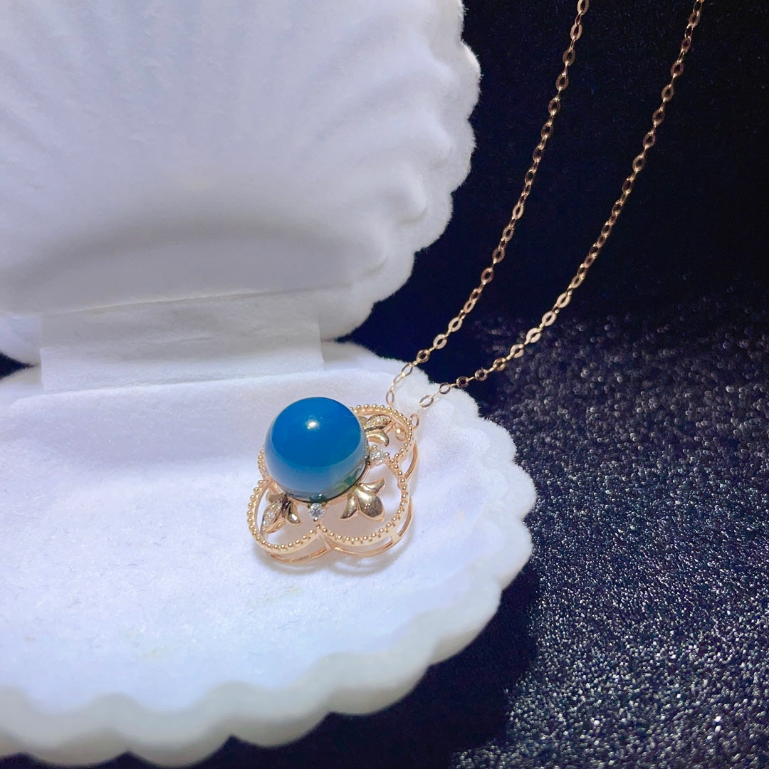 सुंदर 18k गोल्ड एंबेडेड डोमिनिकन ब्लू एम्बर पेंडेंट - शरद ऋतु के अंत और सर्दियों के स्वागत के लिए एक गहना