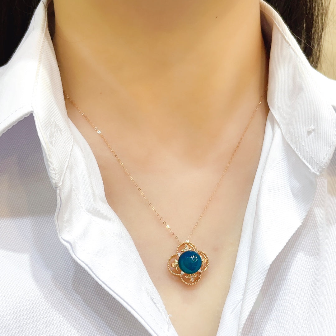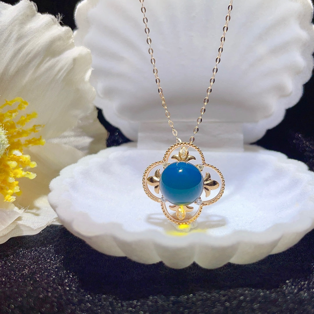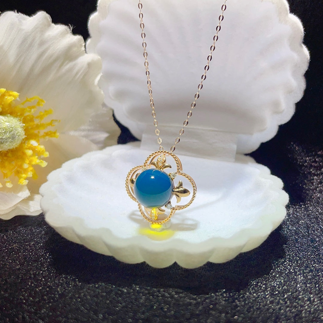 सुंदर 18k गोल्ड एंबेडेड डोमिनिकन ब्लू एम्बर पेंडेंट - शरद ऋतु के अंत और सर्दियों के स्वागत के लिए एक गहना