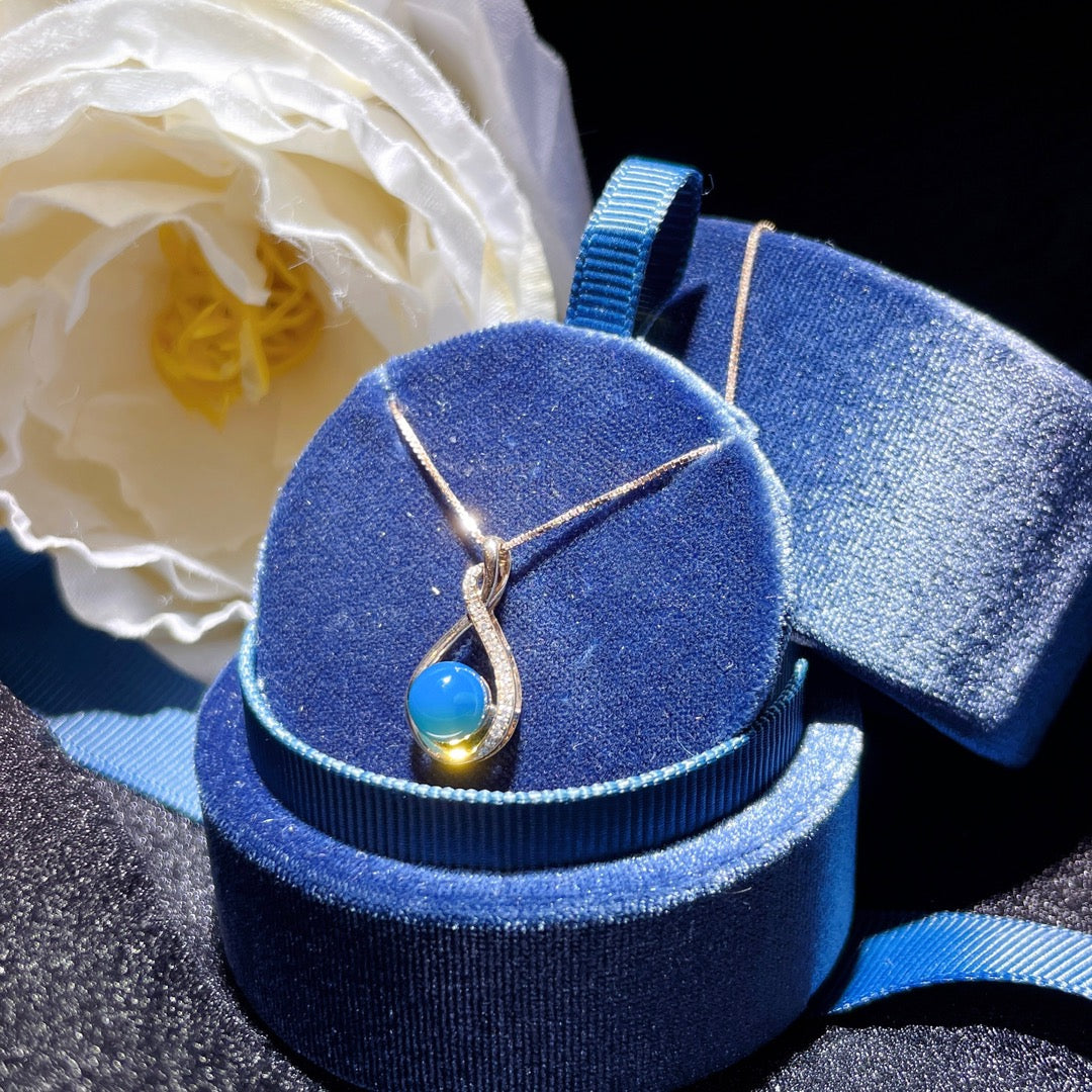 सुरुचिपूर्ण 18K गोल्ड एंबेडेड डोमिनिकन ब्लू एम्बर पेंडेंट - अद्वितीय आभूषण