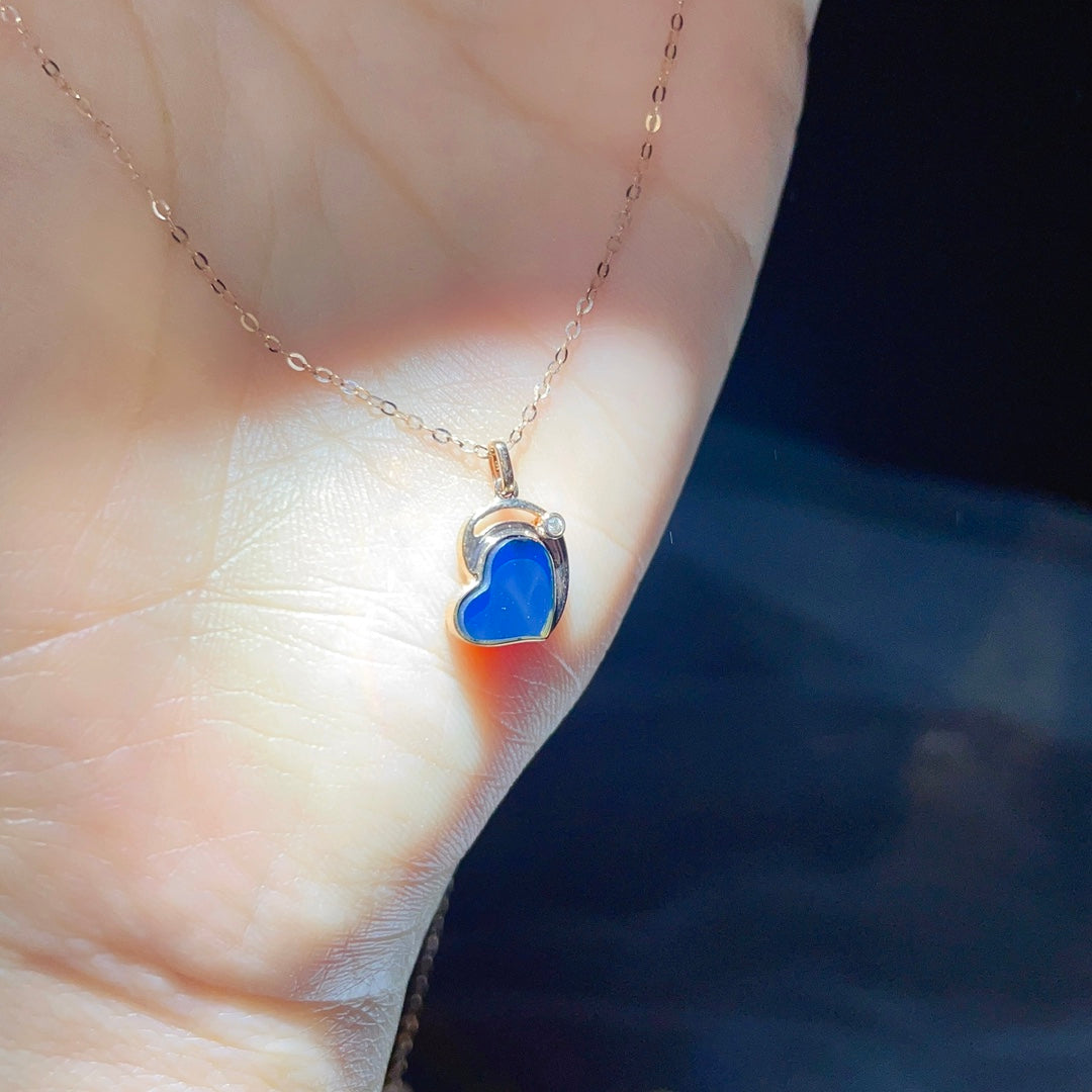 विशेष 18K गोल्ड एंबेडेड डोमिनिकन ब्लू एम्बर पेंडेंट - अद्वितीय आभूषण