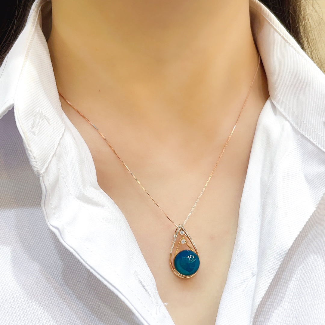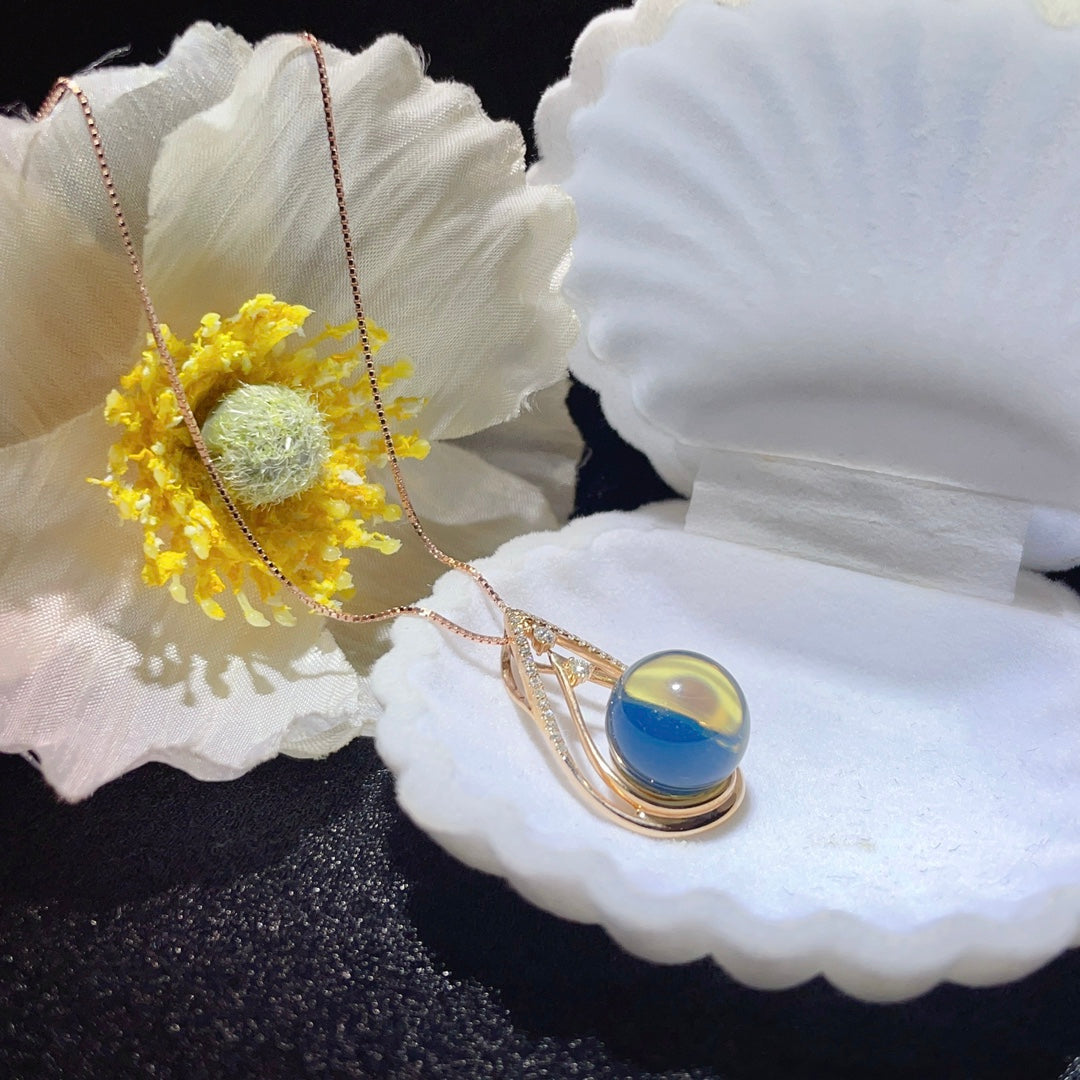 उत्तम 18K गोल्ड एंबेडेड डोमिनिकन ब्लू एम्बर पेंडेंट - आभूषण