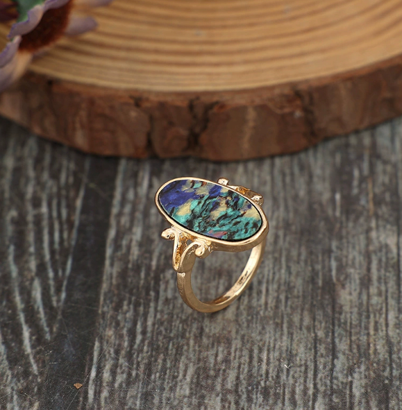Retro Style Geometric Ring Inlaid Color Abalone Shell Personality Alloy Ring