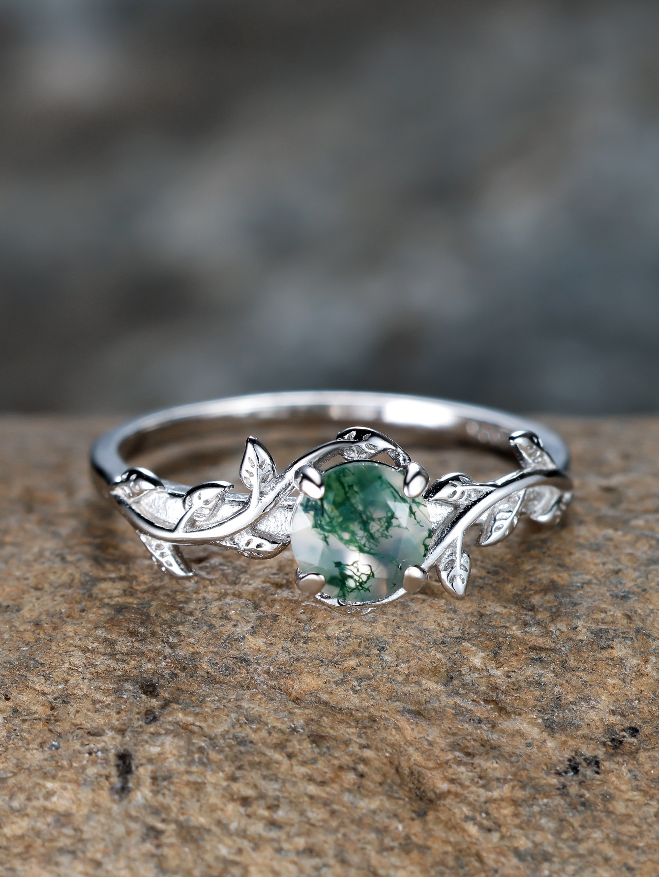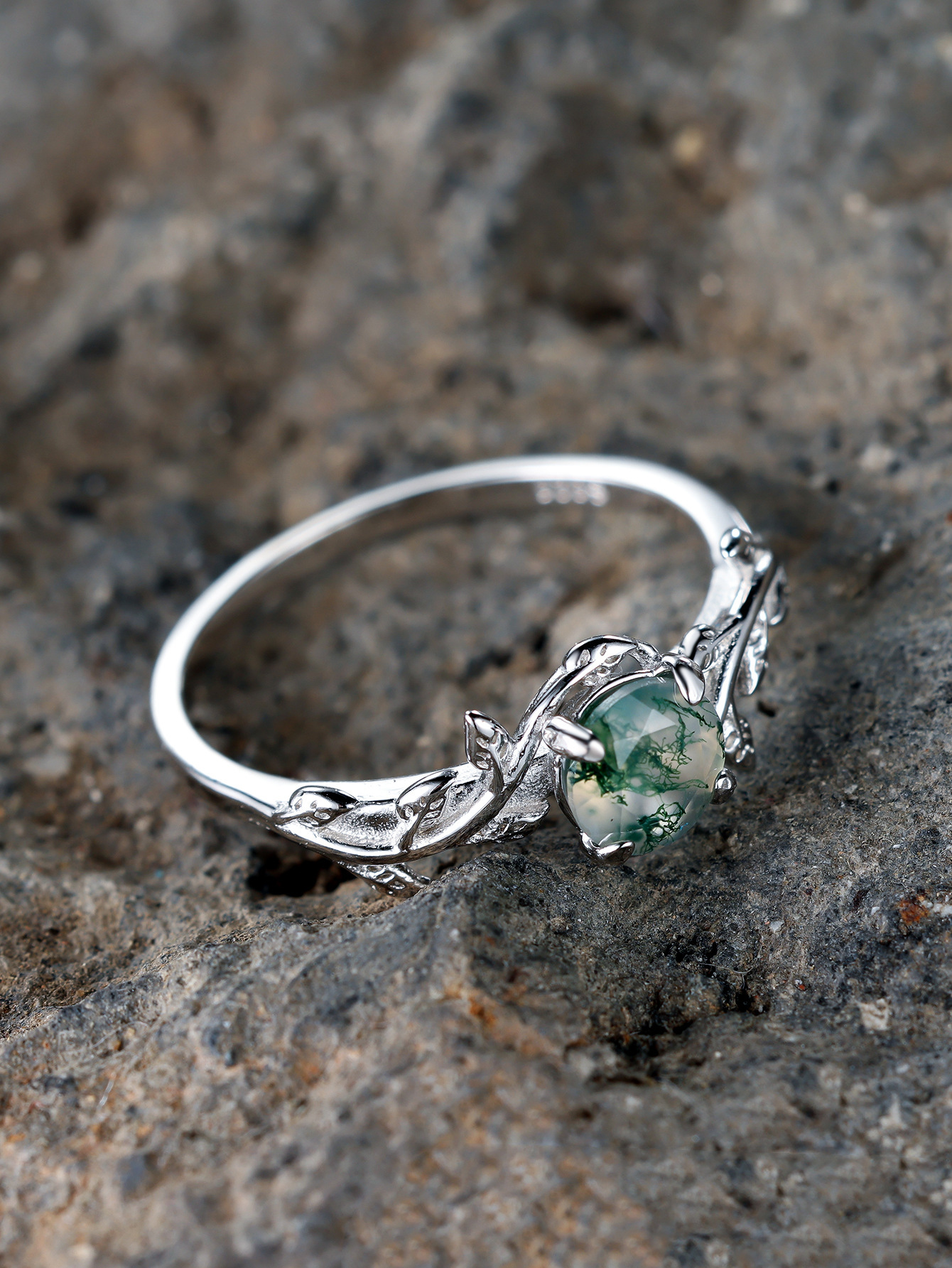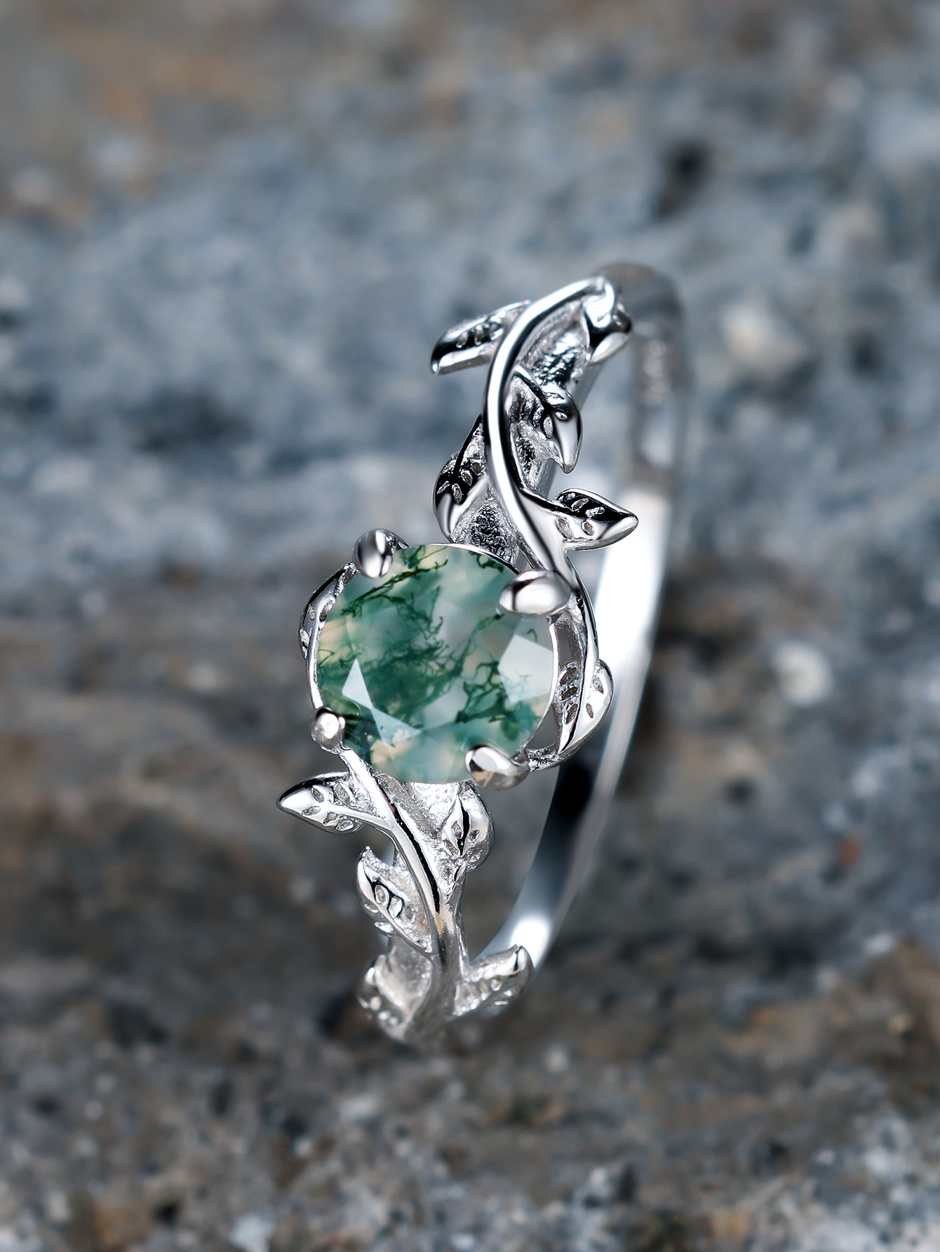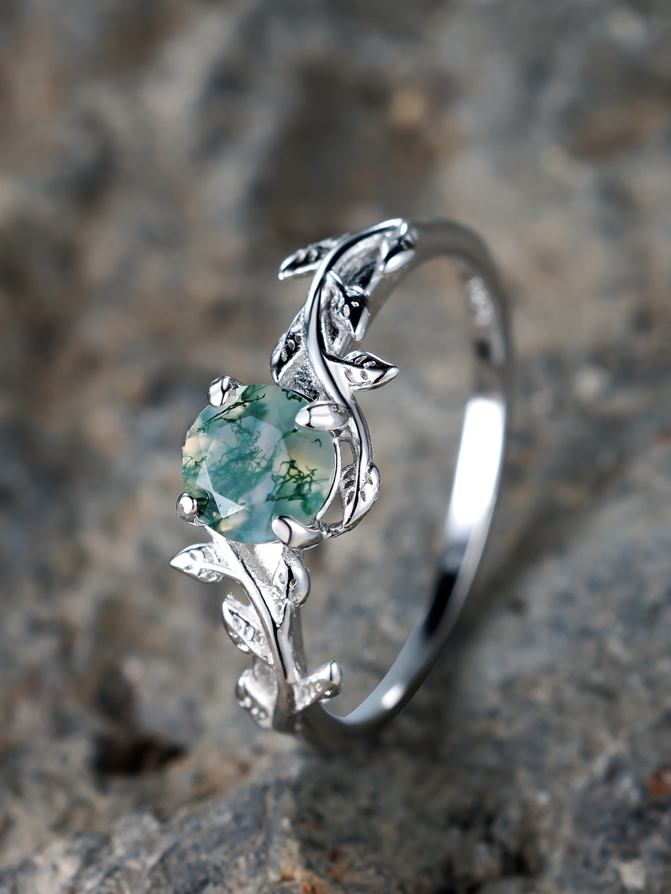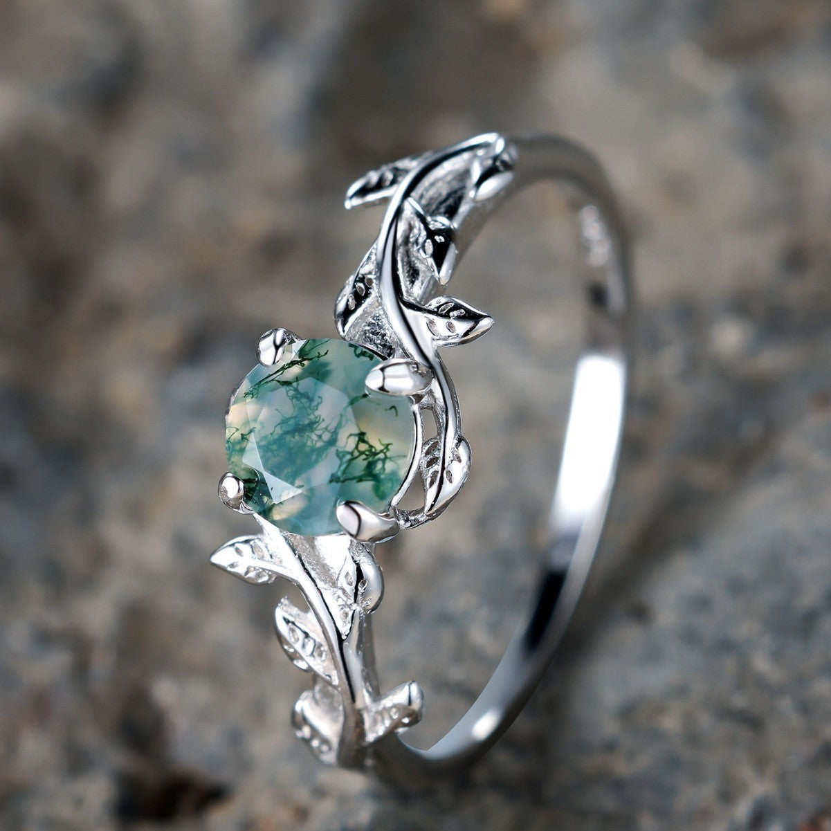 Simple And Fashionable Moss Agate And Aquamarine Ring