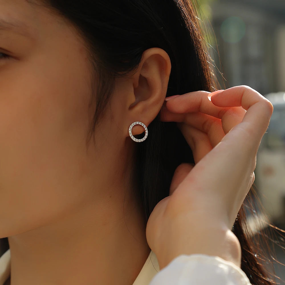 1pair Moissanite Earrings Open Circle Studs 925 Sterling Silver 18K Gold Plated Elegant Jewelry Comes with GRA Certificate