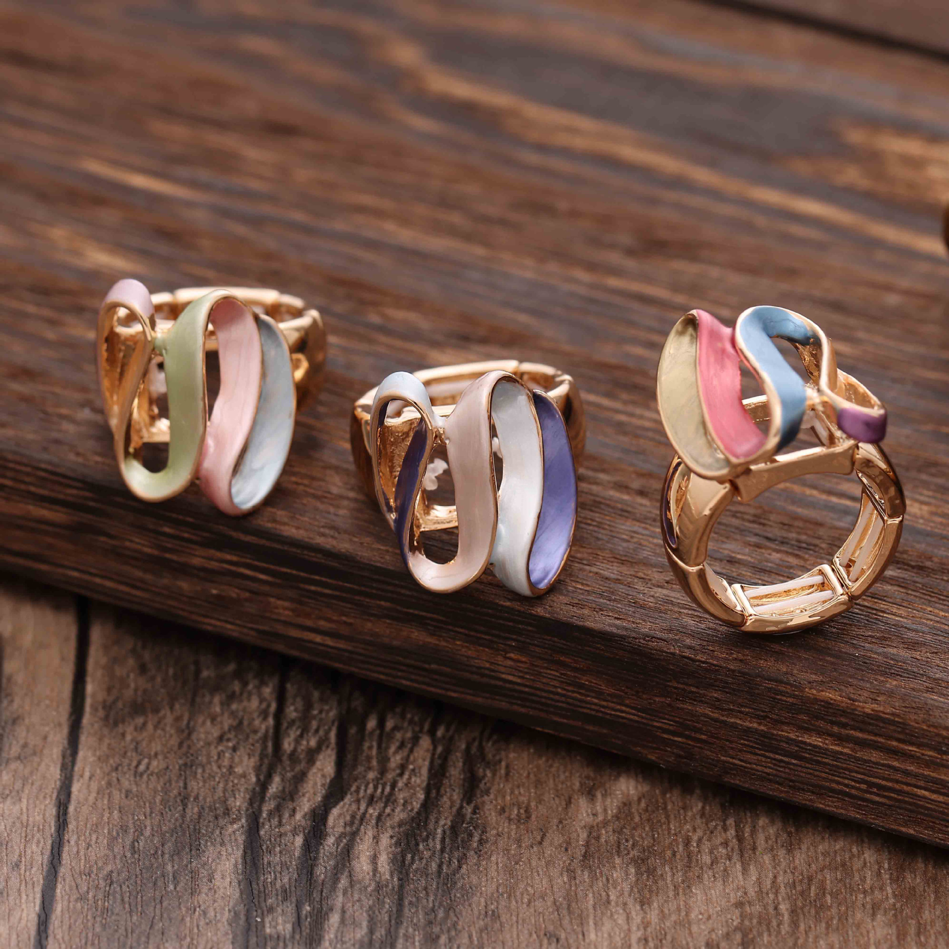 Colors: Spring color geometric line ring, Blue geometric line ring, Winter color geometric line ring
