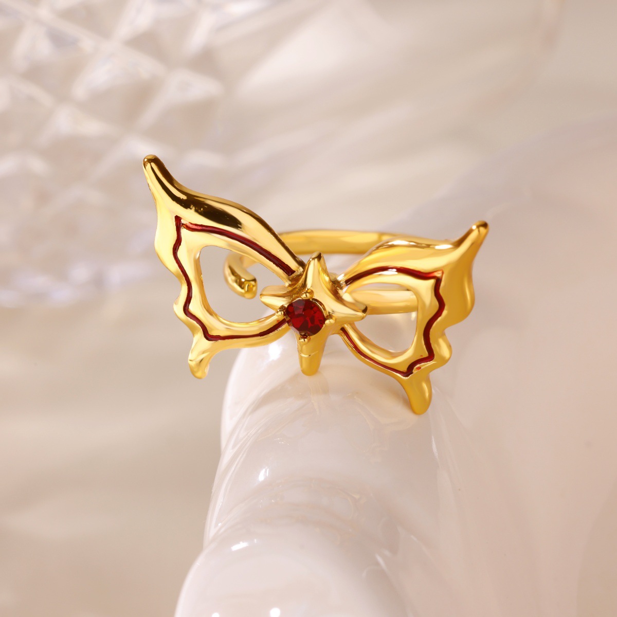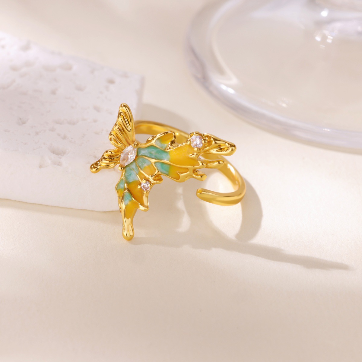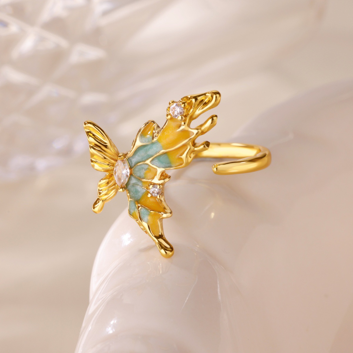Light Luxury High-end Sense Ice Blue Oil Drop Butterfly Open Ring