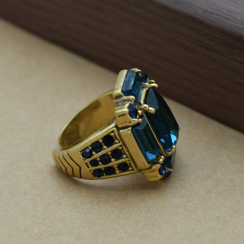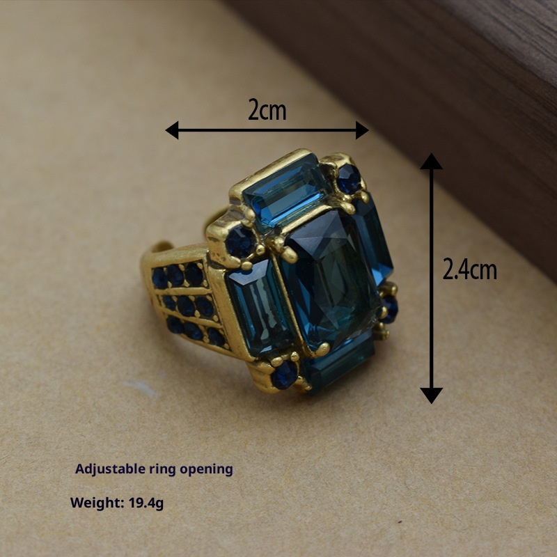 Vintage French Fashion Hot Selling Blue Glass Trendy Versatile Ring