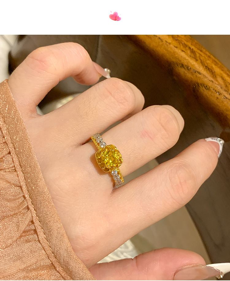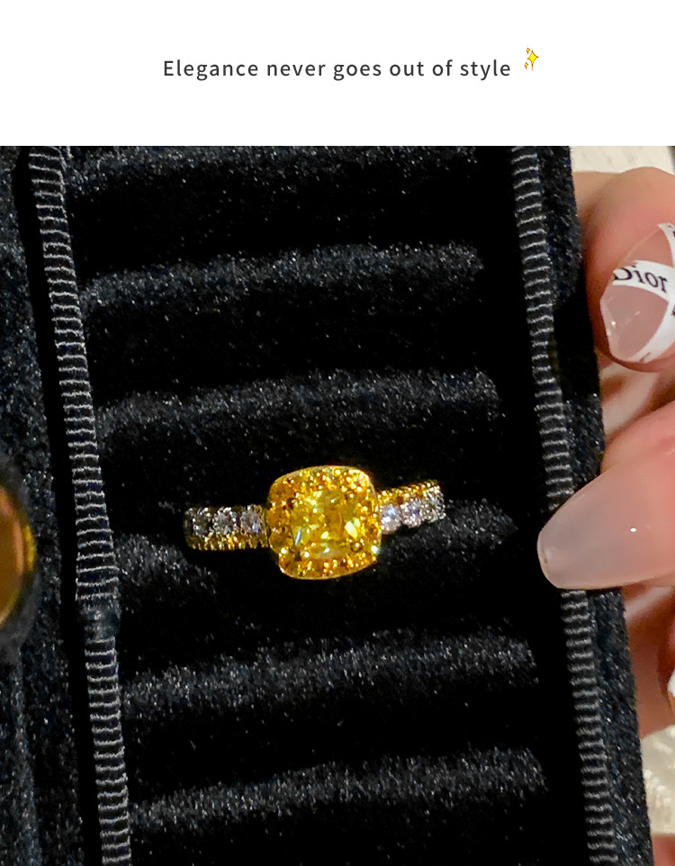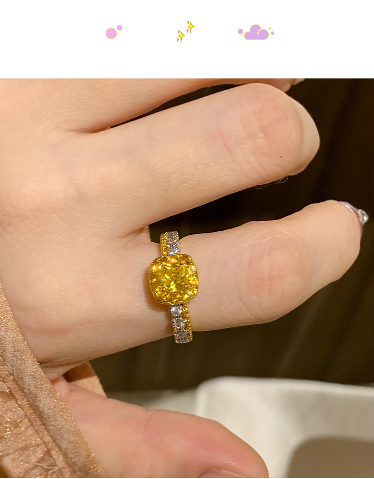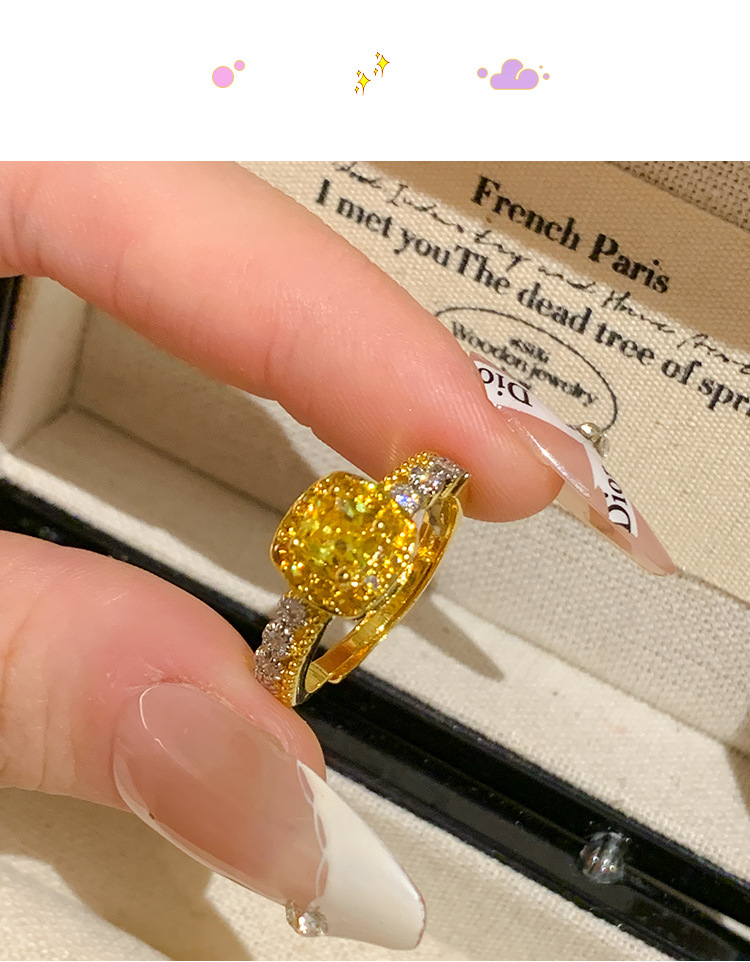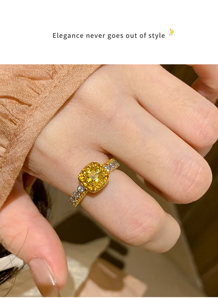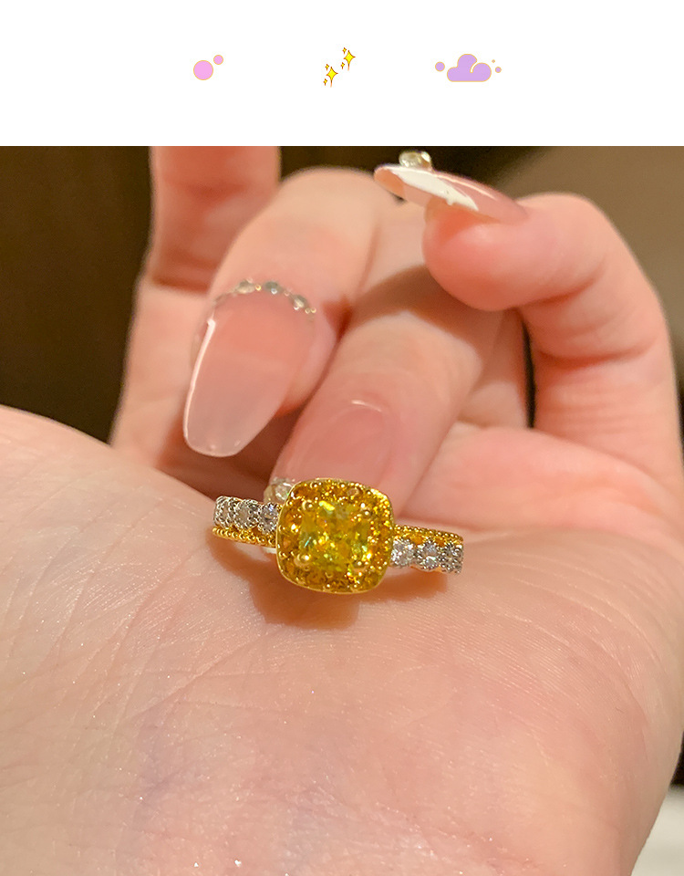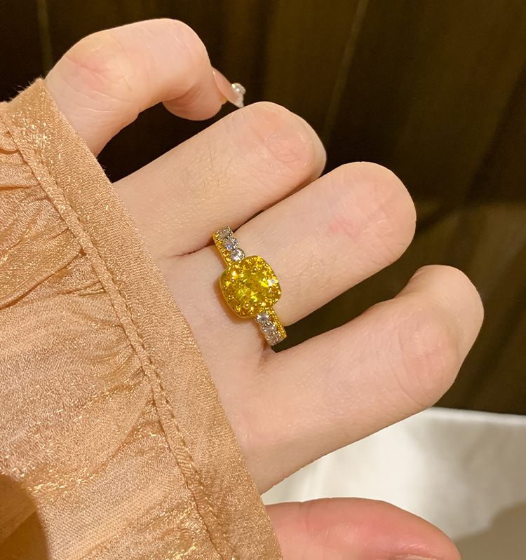 Yellow Diamond Pineapple Cube Sugar Light Luxury High-end Plain Ring