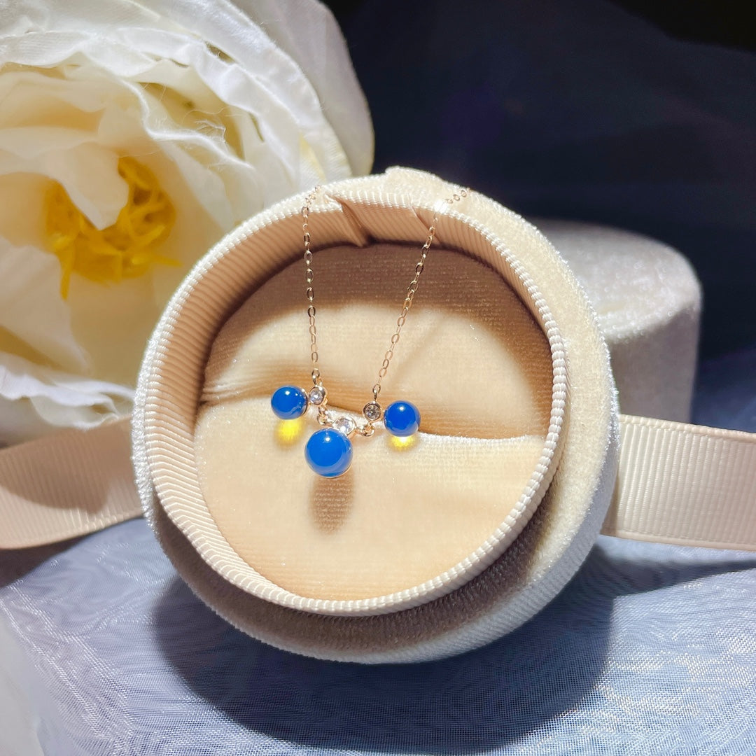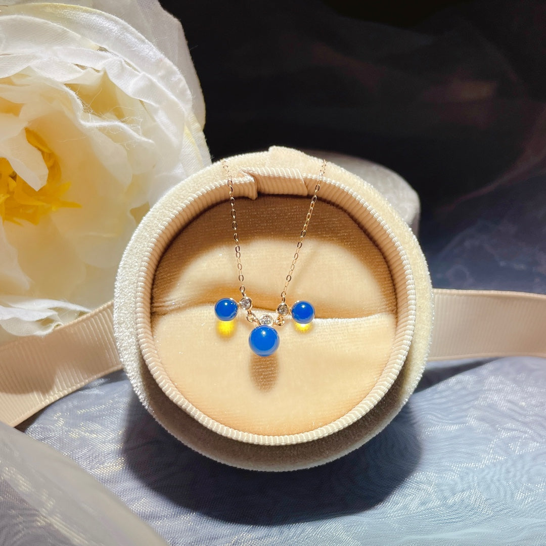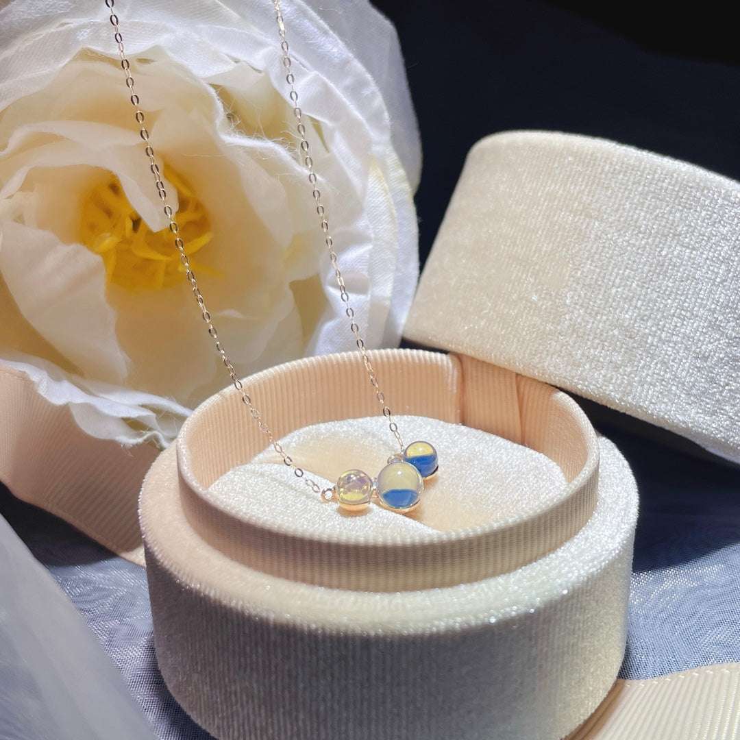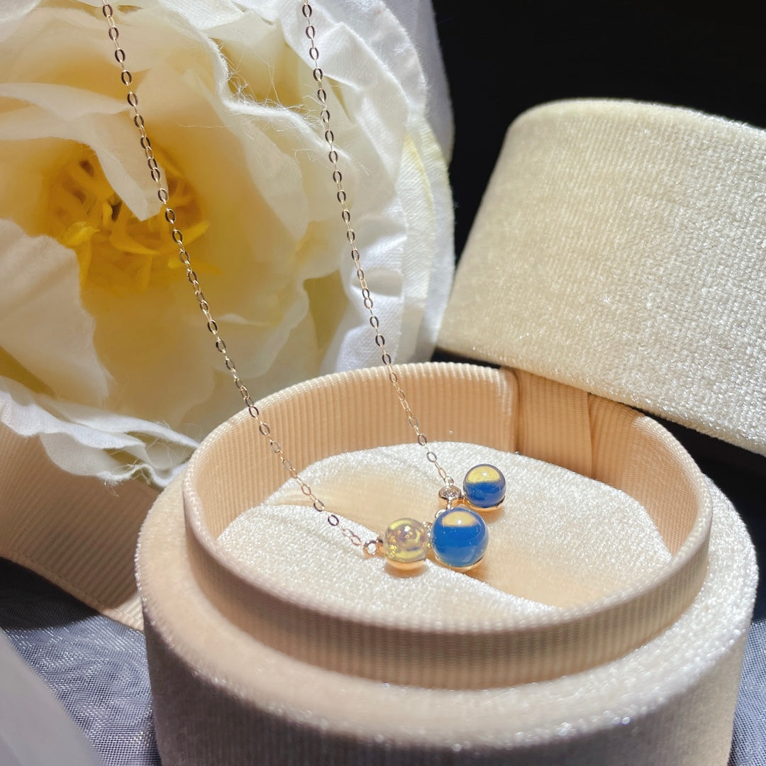 Nowość: Wisior z 18-karatowego złota z osadzonym niebieskim bursztynem dominikańskim - biżuteria z romantycznego wszechświata