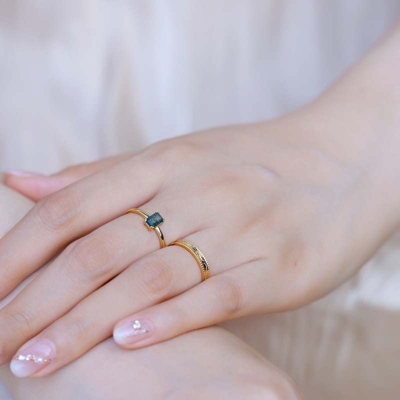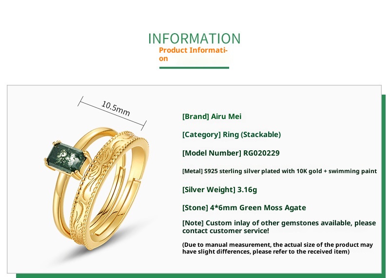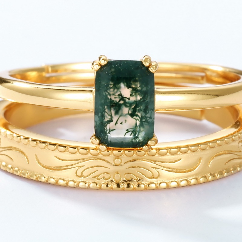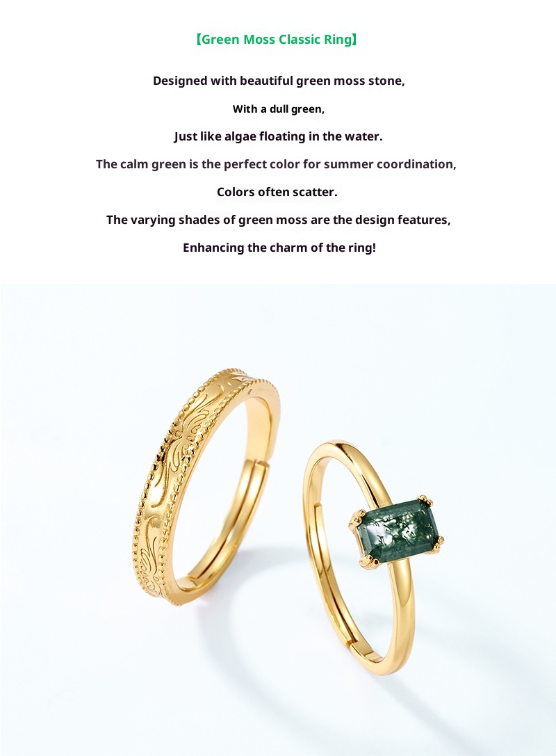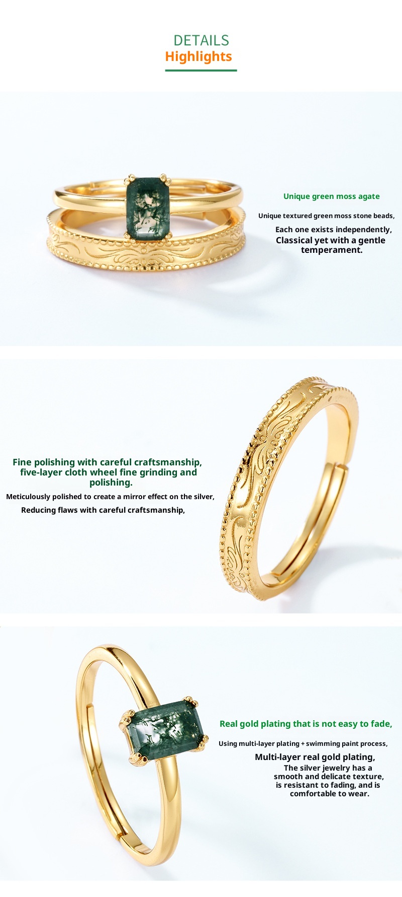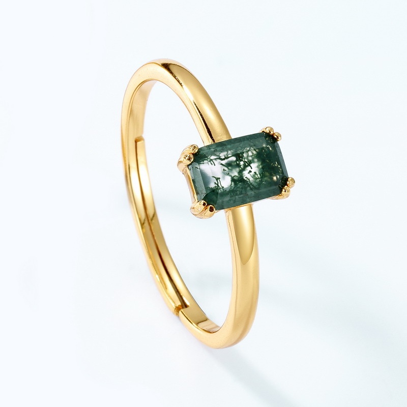 Gold-plated Silver Green Moss Adjustable Ring For Women