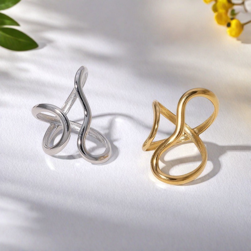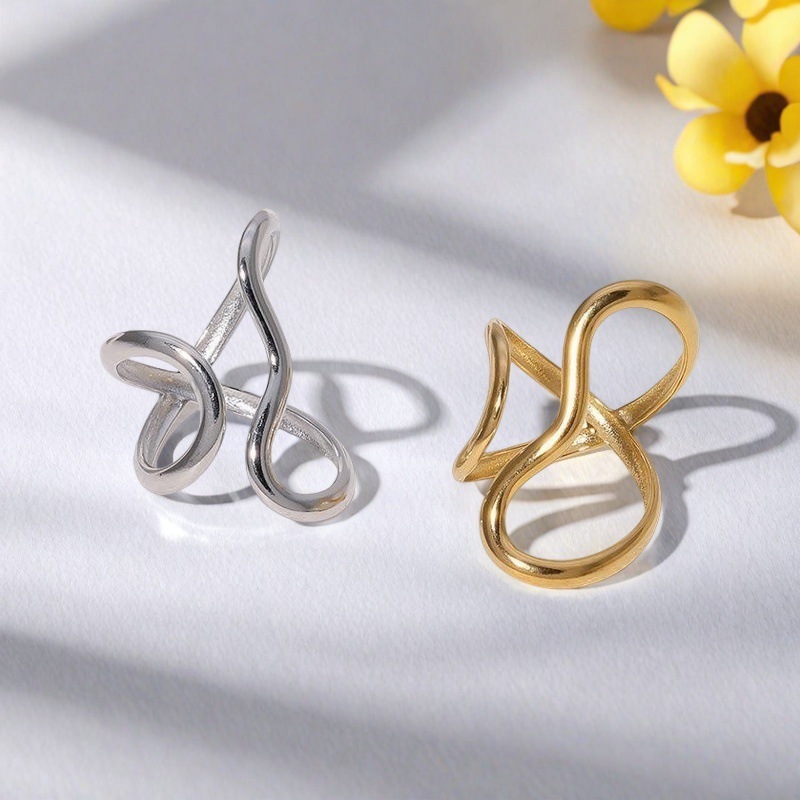 Minimalist Style Irregular Line Stainless Steel Open Ring