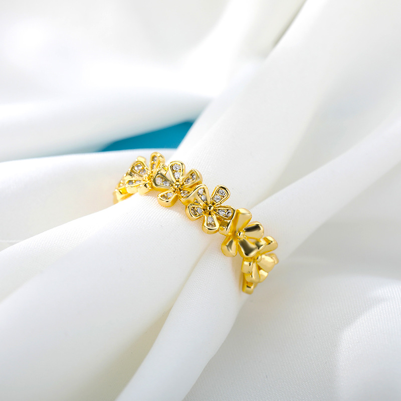 Open Mouth Index Finger Micro-inlaid Zirconia Petal Forest-style Small Flower Ring