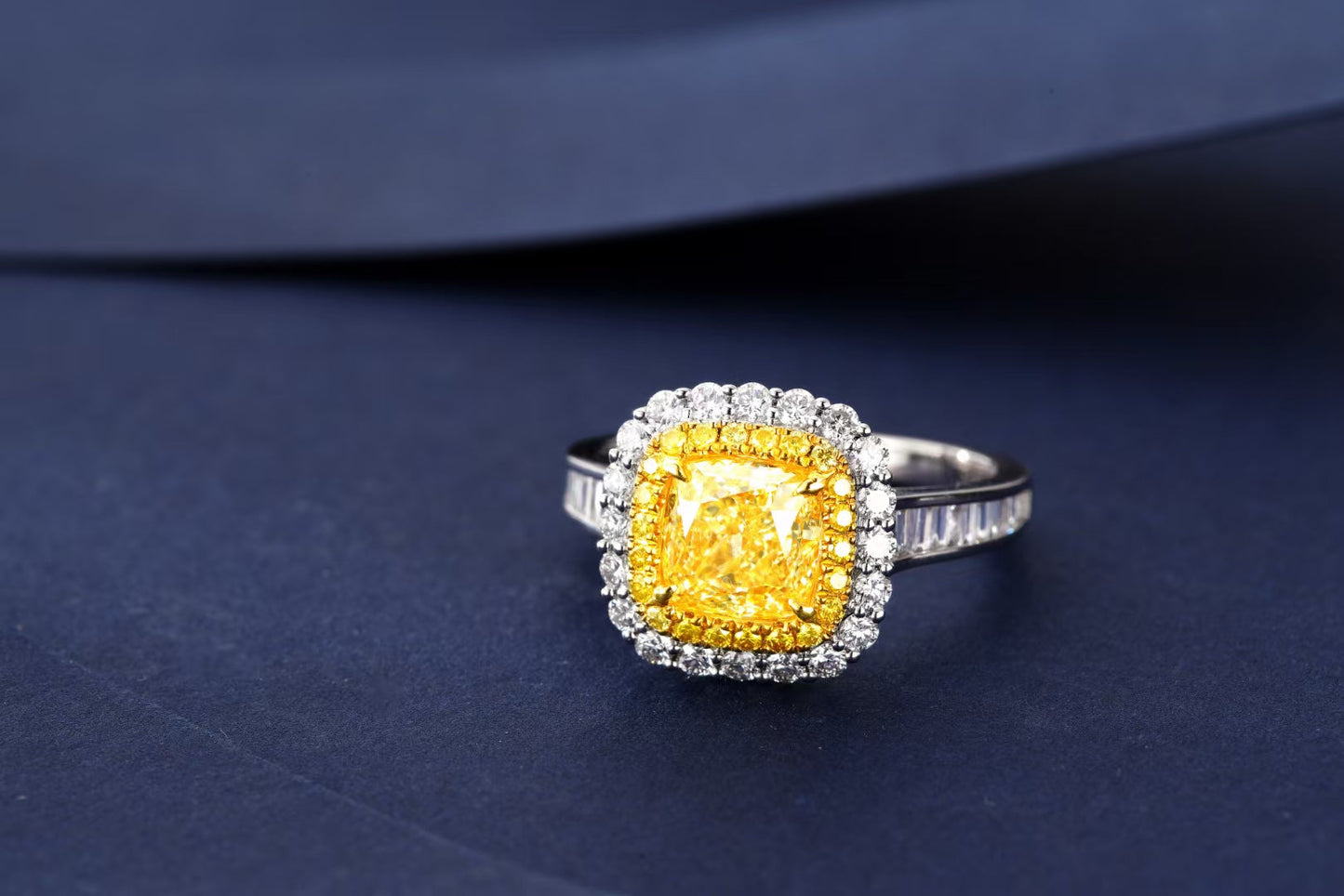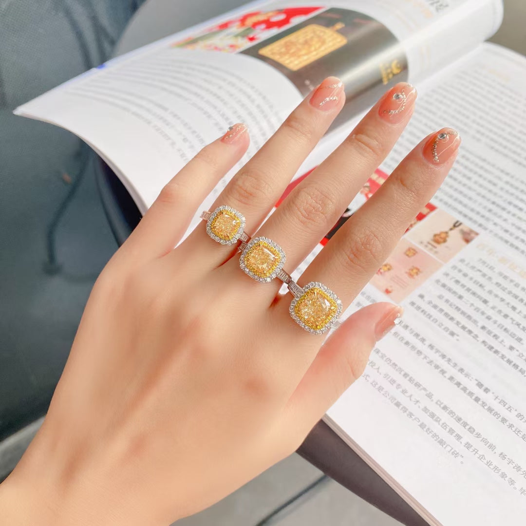 Premium Cushion-Cut Yellow Diamond T-Square Ring - Fine Jewelry
