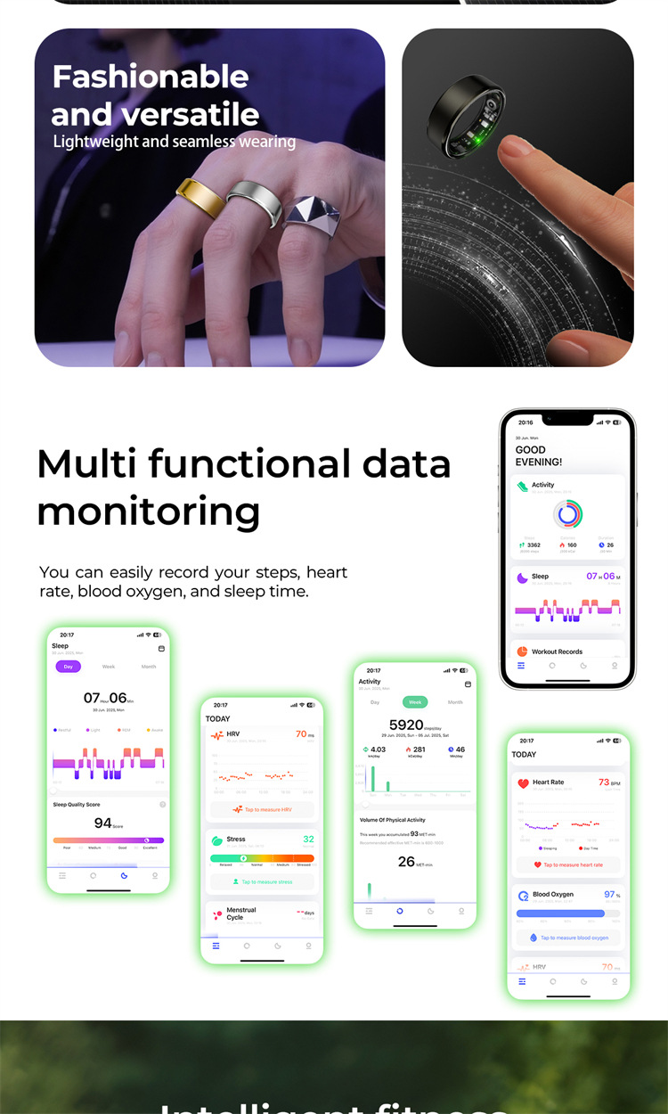 R100 Smart Heart Rate Blood Oxygen Health Sleep Monitoring Sports Ring