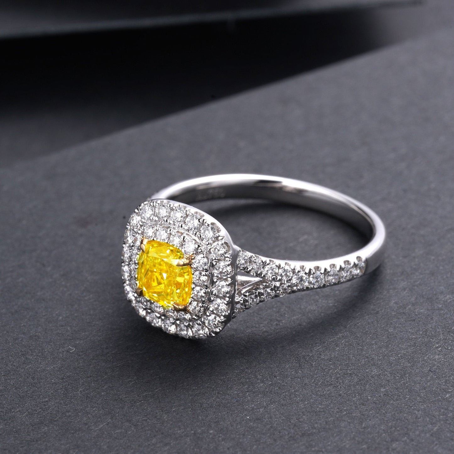 Sparkling Cushion-Cut Yellow Diamond Ring - Exquisite Jewelry