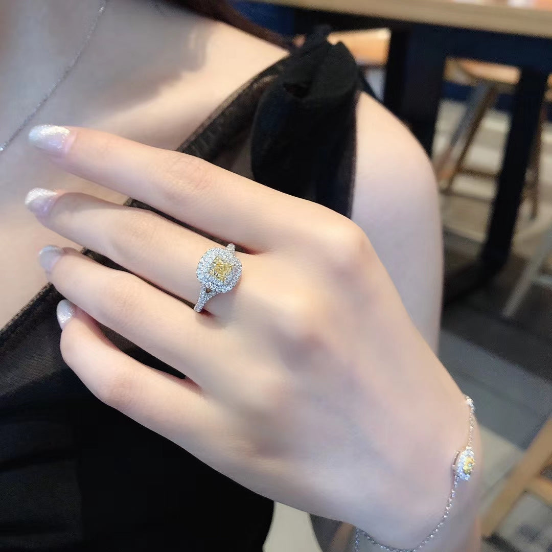 Discover the elegance embodied in our exquisite cushion-cut yellow diamond ring. The centerpiece boasts a dazzling D0.614ct yellow diamond, complemented by smaller stones totaling d0.441ct, creating a masterpiece of 3.658g. Crafted with precision and attention to detail, this ring is not just a piece of jewelry; it's a statement. Its versatile size (12-15#) ensures a perfect fit for many, with the option for resizing available. Elevate your style quotient and make a lasting impression with this stunning piece of jewelry. Explore the luxury of personalized elegance and indulge in the allure of this remarkable ring. Experience the magic of exquisite jewelry that speaks volumes about your unique taste and sophistication. Shop now and adorn yourself with a timeless treasure.