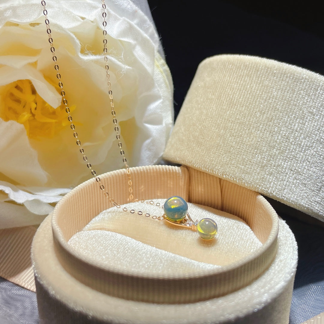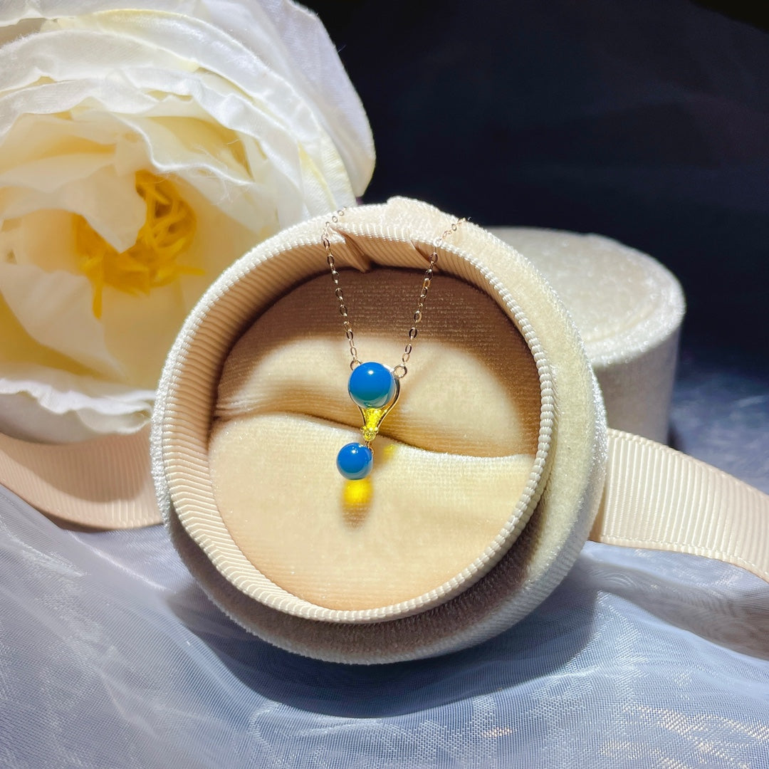 Noua sosire: Pandantiv cu chihlimbar albastru dominican încorporat în aur de 18k - bijuterii rafinate